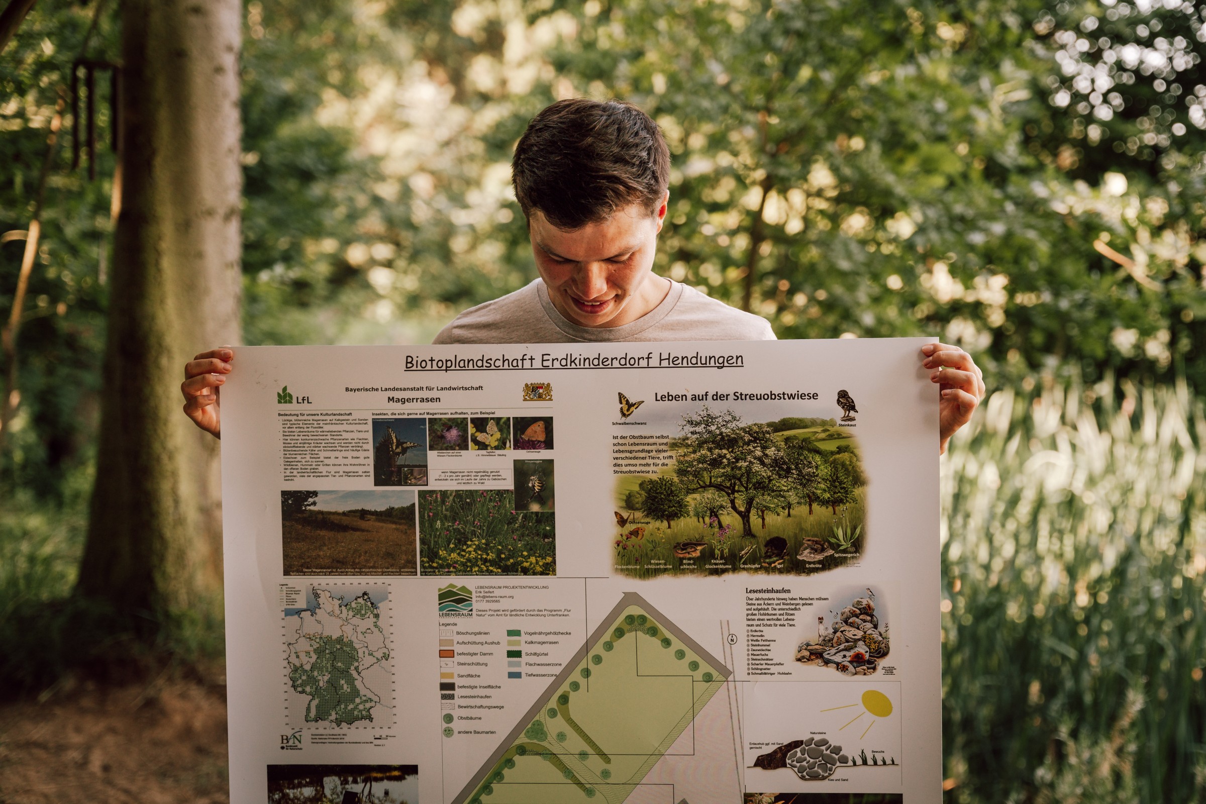 Wer in der dünn besiedelten Rhön aufwächst und die Sommerferien regelmäßig bei den Verwandten in einer 11-Millionen-Stadt in China verbringt, der lernt ziemlich gut mit Gegensätzen umzugehen. Perspektiven zu wechseln. Sich in verschiedenen Gesellschaften zu bewegen. Zwischen Welten zu wandern. „Was mich geprägt hat, sind Kontraste“, sagt Erik Seifert. Als Sohn eines Rhöners und einer Chinesin waren ihm unterschiedliche Blickwinkel also fast schon in die Wiege gelegt. Wir treffen ihn im Sommer 2023 auf der Höhe am Ortsrand von Hendungen. Schön ist es hier am Waldrand, viel Natur, ein Feuchtbiotop, eine Streuobstwiese, Gemüsebeet, idyllische Sitzplätze mit Ausblicken in die Rhönlandschaft – es ist alles da, was einen Ort zu dem macht, was viele Menschen als Paradies bezeichnen würden. Schon sein Vater hat hier auf dem Grundstück angefangen, Strukturen für mehr Artenvielfalt zu schaffen. Und weil Erik Seifert gerne noch ein Stück weiterdenkt, gibt es jetzt hier eine Baustelle, die das Feuchtbiotop noch viel größer macht. Und auch sonst kann er sich einiges mehr vorstellen, was auf dieser Fläche passieren soll.