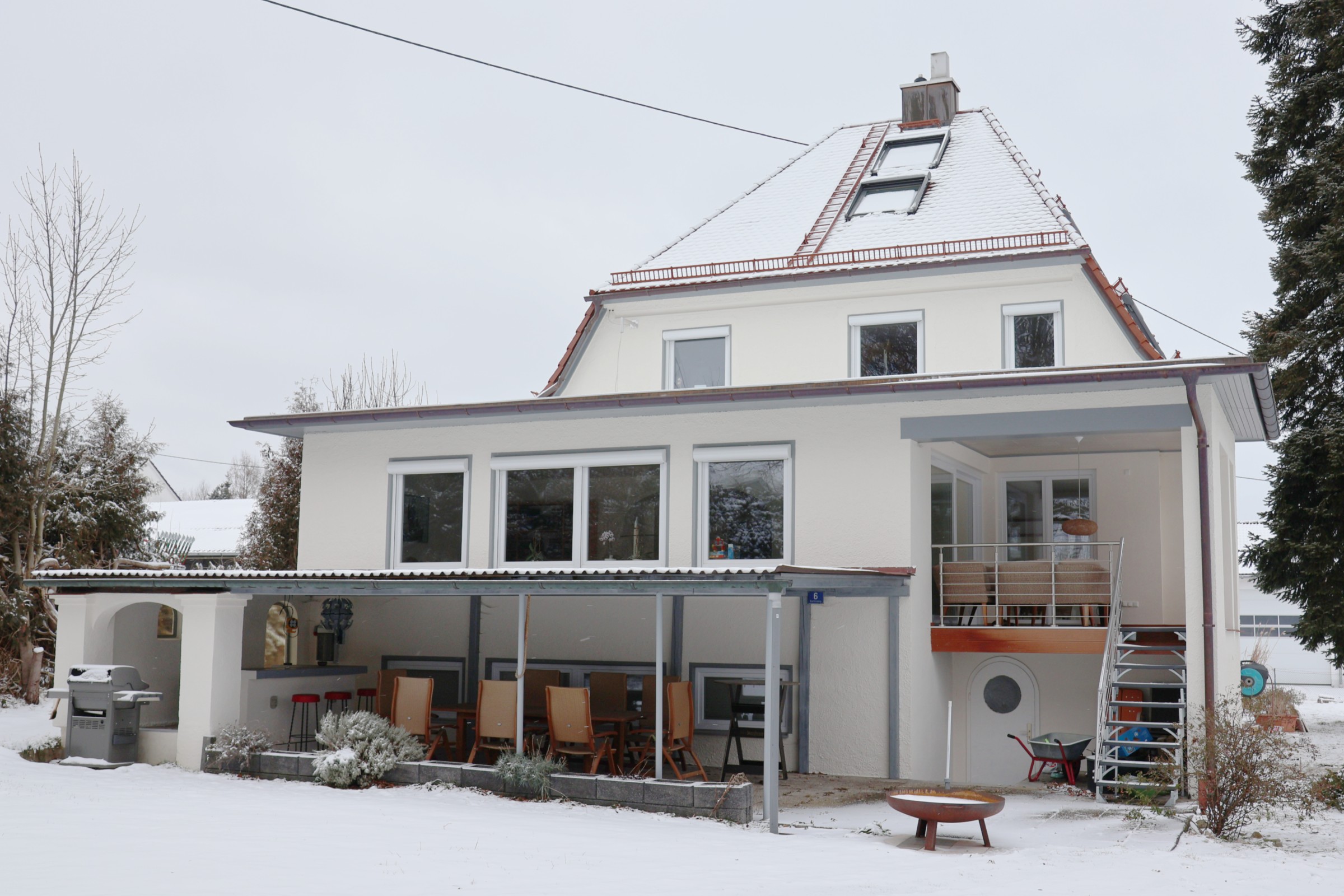 Ein enormer Posten bei der Sanierung war auch der Austausch der Fenster – und von denen gibt es in dem markanten Gebäude am Nordrand Mittelneufnachs 44 Stück. Die alle immer blitzblank zu halten, haben die Schickerts bereits aufgegeben, denn Arbeit gibt es drinnen und draußen auch so genug. Ehe die aus Klosterlechfeld hergezogene Familie das Anwesen erwarb, war es mit einer hohen Thujahecke und Stacheldraht regelrecht verbarrikadiert. Jetzt ist da nur noch ein filigraner Zaun, der gewährleistet, dass Familienhund Moses im Garten frei springen kann.