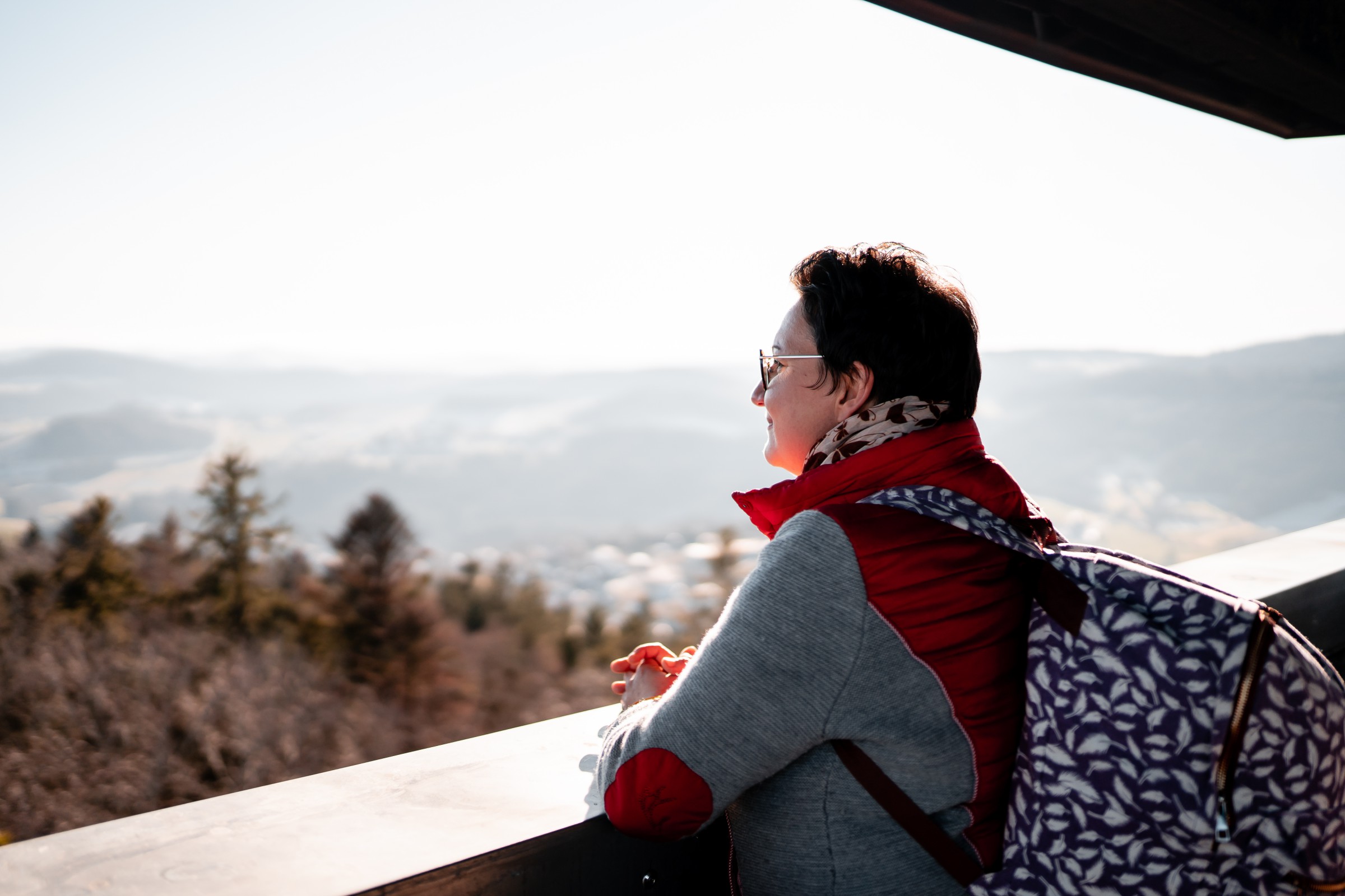 Oben auf dem Kadernberg in Schönberg hat man einen phänomenalen Ausblick auf den gesamten Bayerischen Wald, vom Aussichtsturm aus sogar bis in die Alpen in der Ferne. Viel Weitblick ist da, in alle vier Himmelsrichtungen. Wohl deshalb fühlt sich die gebürtige Miesbacherin genau am richtigen Ort. Seit zwanzig Jahren lebt sie nun in Schönberg und hat damit einen Familientraum verwirklicht. Doch eine „Zugereiste“ ist sie längst nicht mehr. Als Waldführerin, Tourismusmanagerin, Gemeinderätin, und Aktive mit einer Menge an Vereins- und parteipolitischen Ehrenämtern fühlt sie sich in die Gemeinschaft aufgenommen, diese spezielle Schönberger Philosophie kam ihr da gerade recht.