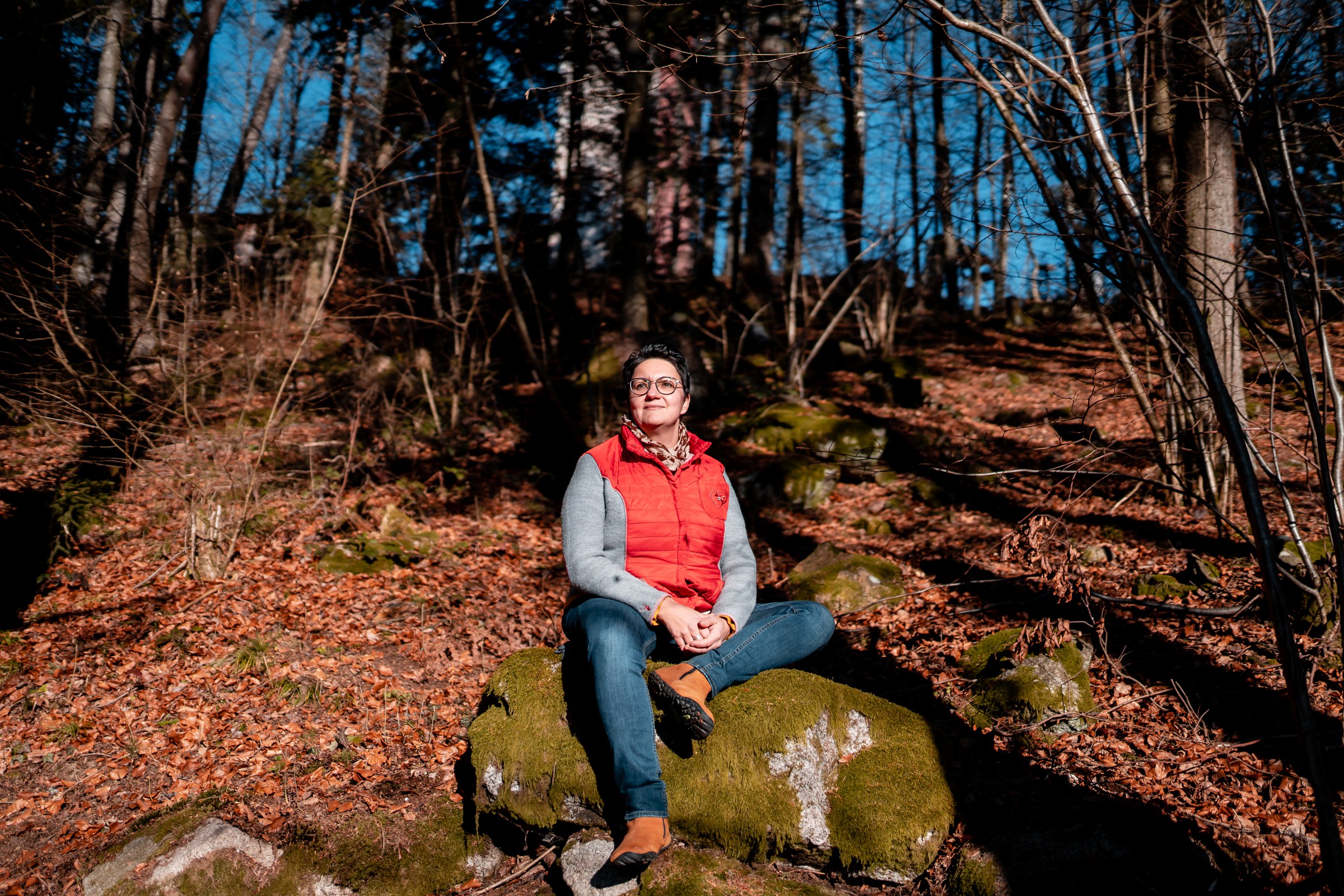 Eigentlich wollte sie ja Grundschullehrerin werden, aber das Studium war ihr nicht praxisnah genug. Das Angebot der Nationalparkverwaltung Bayerischer Wald für die Ausbildung zur Waldführerin kam für sie 2006 genau zur rechten Zeit. „Eine Schicksalsfügung“, nennt sie es. Deshalb vermittelt sie ihr Wissen nun an Gäste aus aller Welt, macht Reisebegleitungen und Wandertouren durch den Bayerischen Wald, bietet individuelles Natur- und Wandercoaching mit Achtsamkeitsübungen an und arbeitet in touristischen und umweltpädagogischen Projekten in der Region mit. Was sie den Gästen, die nur wenige Tage in der Gegend sind, mitgeben möchte? „Das, was mir selbst auch so guttut“, sagt sie, „raus in die Natur, weg vom Alltag, Durchschnaufen können, zur Ruhe kommen, Gedanken durchsortieren, sich wieder erden.“