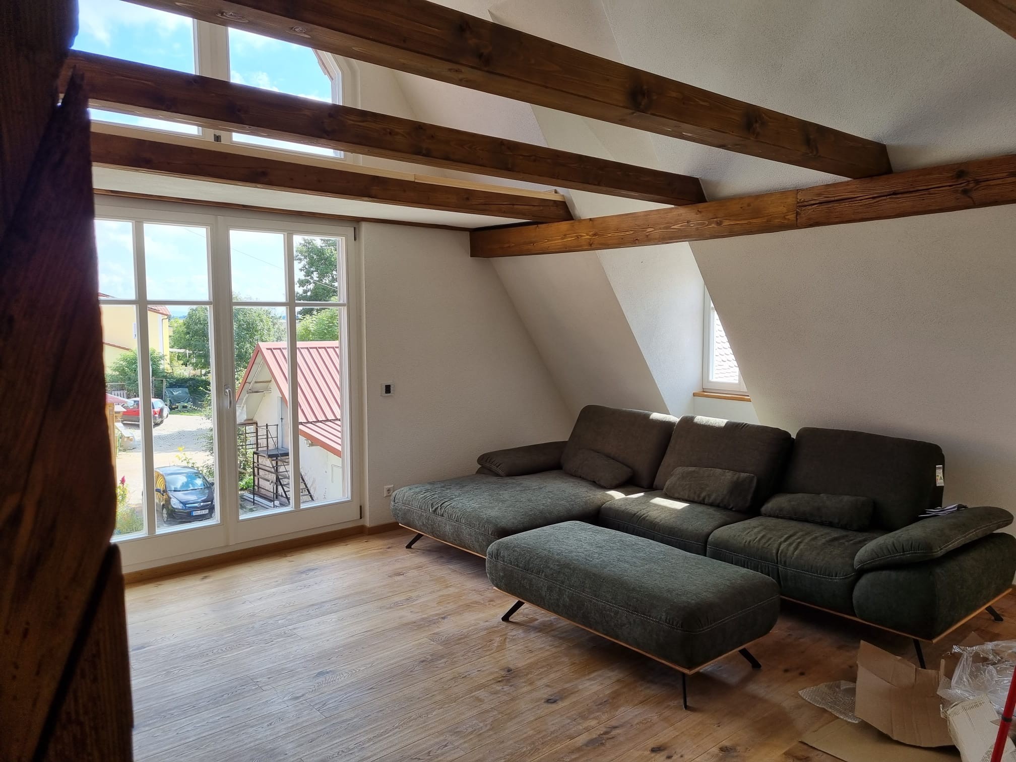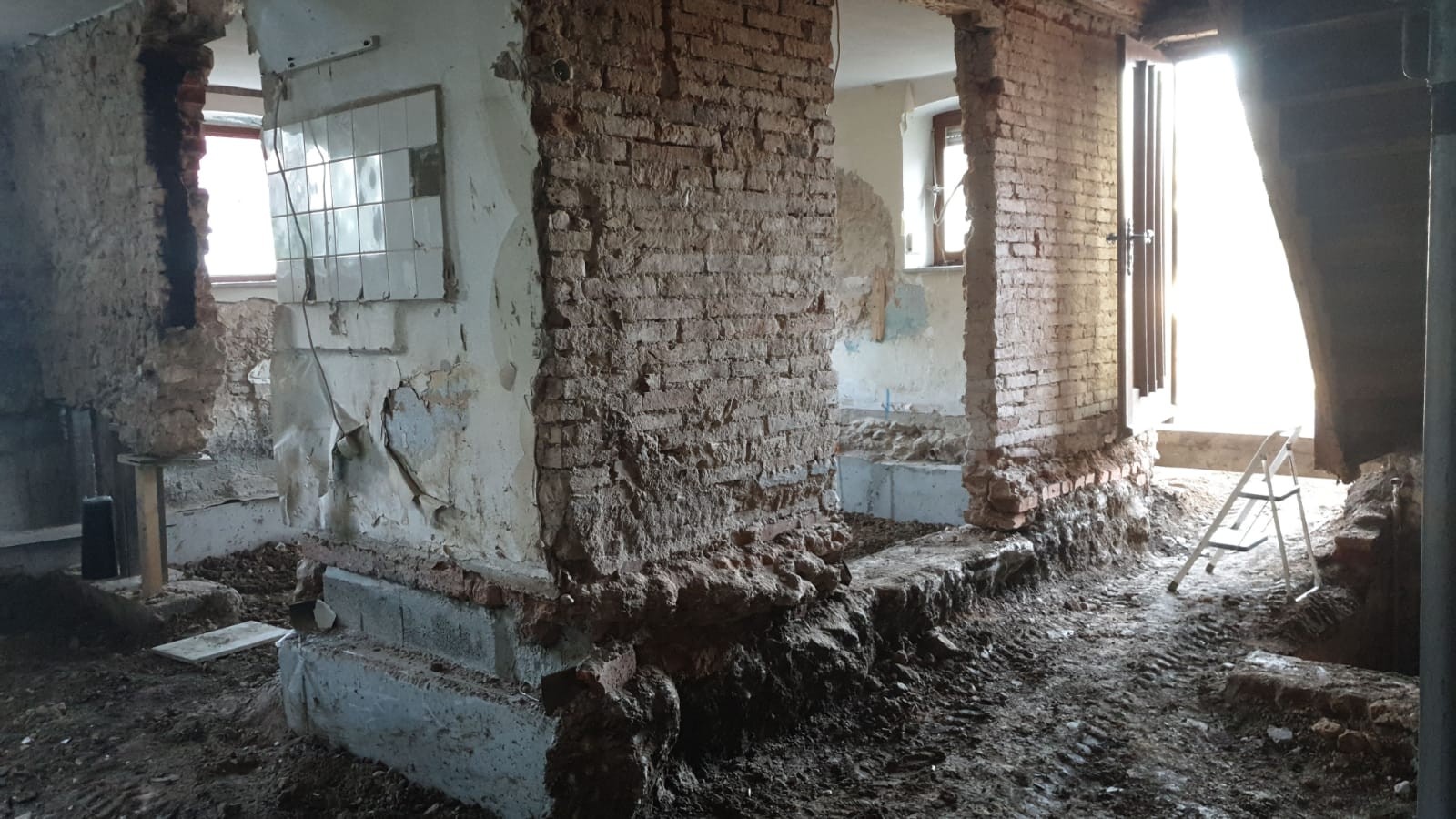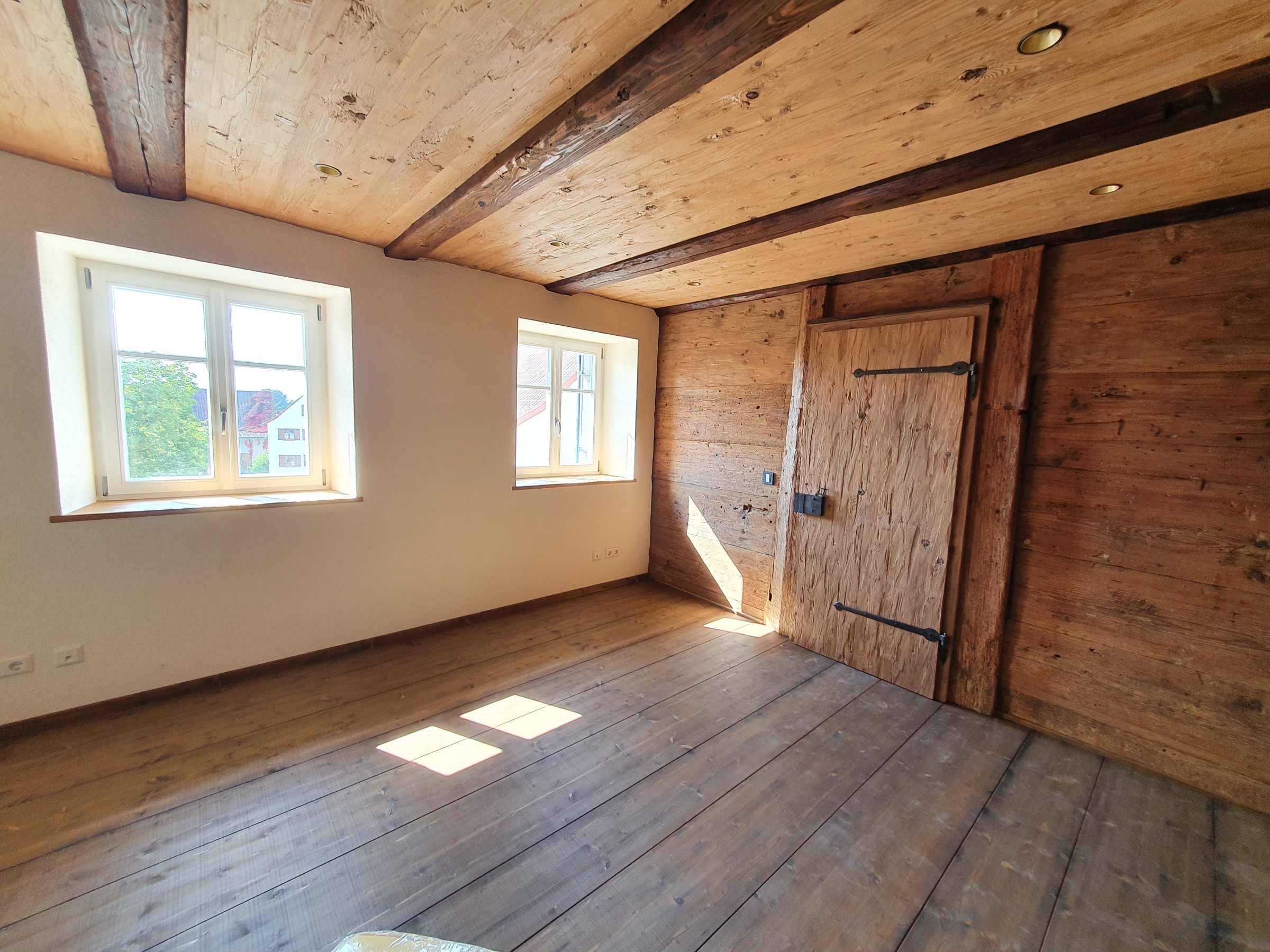 Die ehemalige, denkmalgeschützte Priesterbehausung war ursprünglich ein Fachwerkbau und verfügte vor der Sanierung weder über eine Heizung noch über eine Isolierung. Auch die Sanitär- und Elektroinstallationen waren veraltet. Es gab also viel zu tun für die Offingers, die das in die Jahre gekommene Gebäude bis auf die Grundmauern kernsanierten und statisch ertüchtigten: Ein Mammutprojekt, in das sie unzählige Stunden und eine Menge Herzblut investierten.