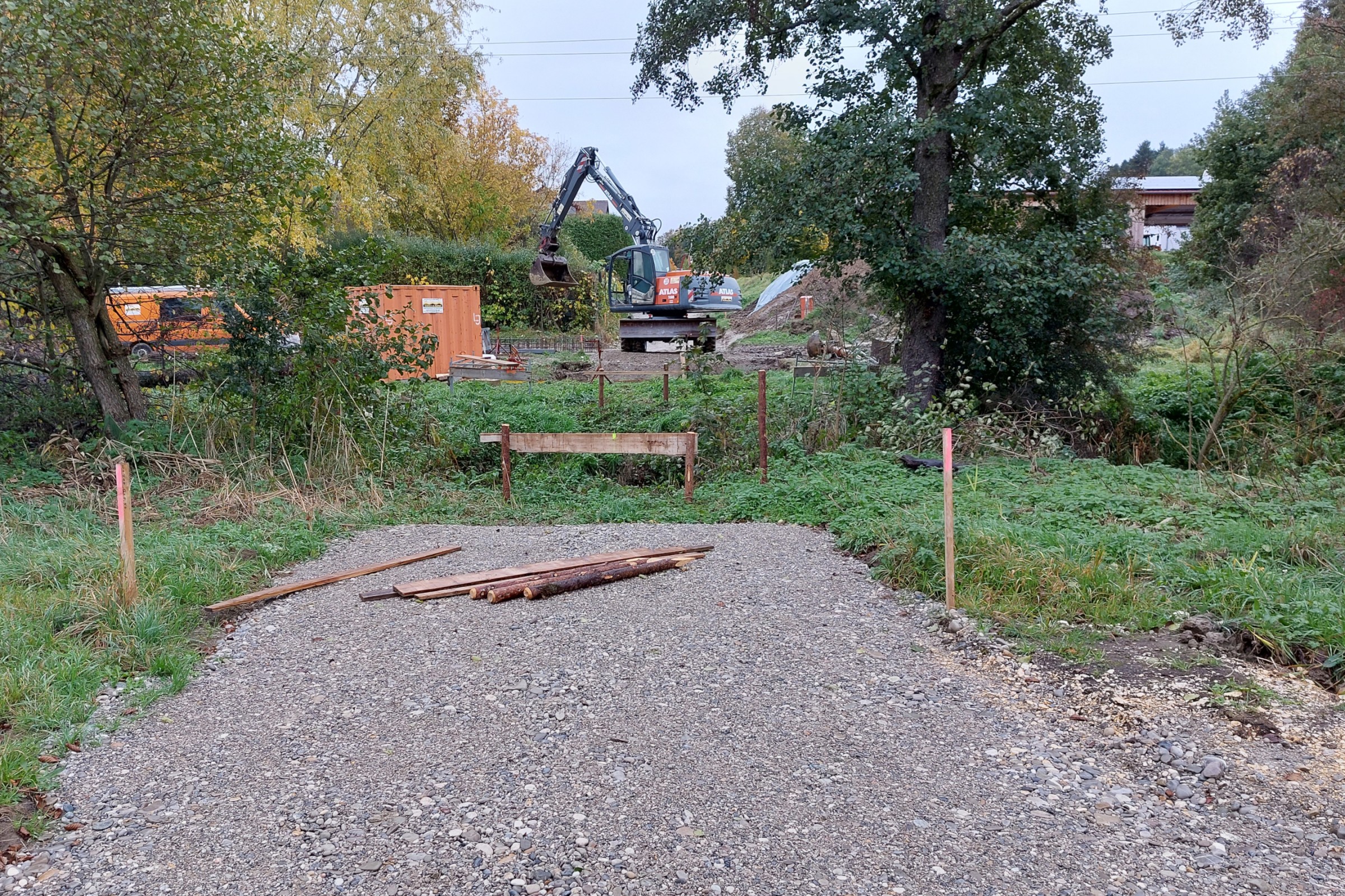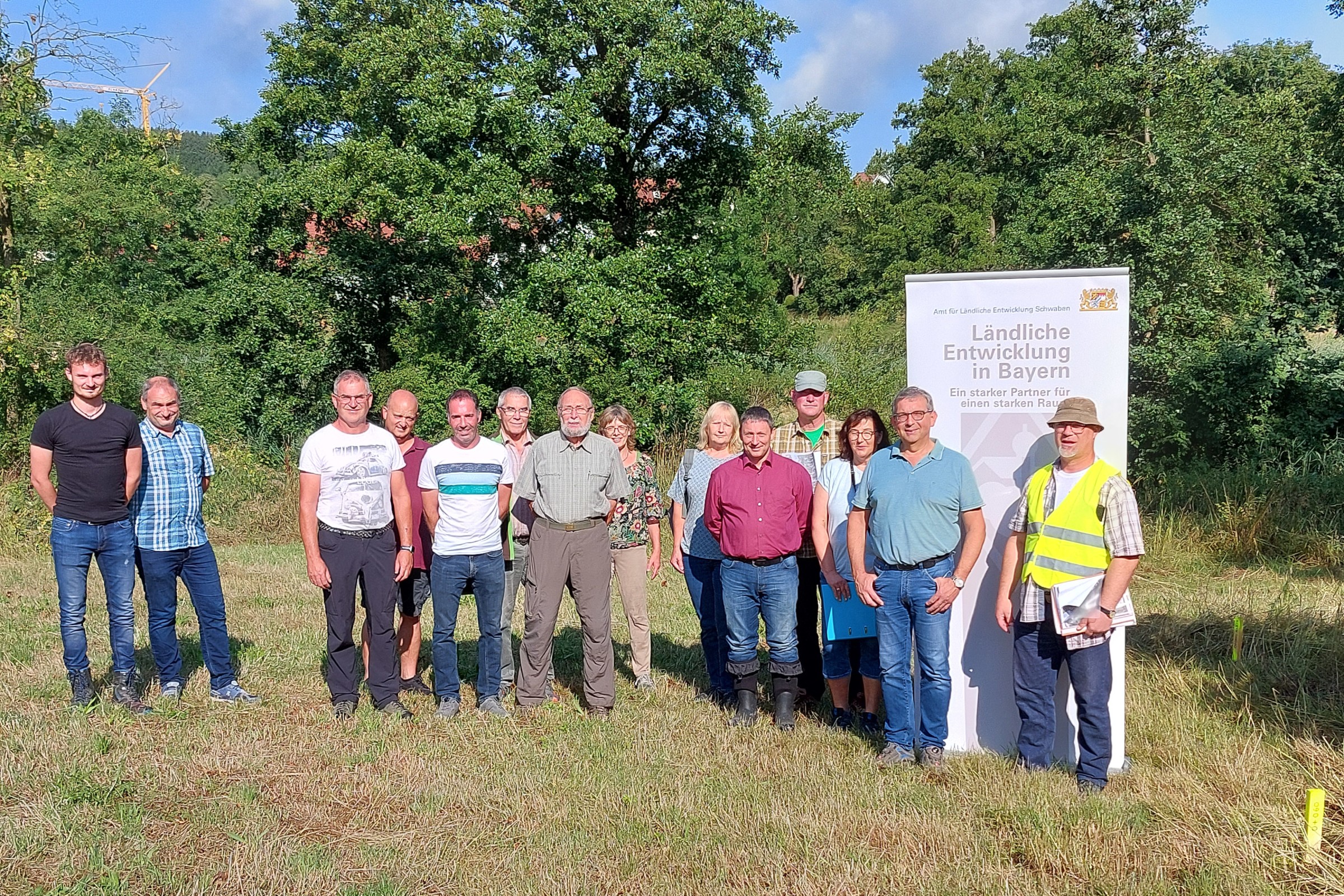Schon lang vor dem Bau war der Talaueweg als elementarer Bestandteil der seit über 15 Jahren in Langenneufnach laufenden Dorferneuerung und Flurneuordnung gedacht. Nach mitunter zähen Grunderwerbsverhandlungen und einer nicht ganz einfachen Planung konnten Anfang September die Bagger anrollen. Rund zwei Monate später fehlt auf über der Hälfte des rund ein Kilometer langen Wegs entlang der Neufnach nur noch die oberste Feinschicht. Genutzt wird der Weg bereits: „Kaum ist das Kies drin und die Bagger weg, gehen die Leute schon spazieren“, erfuhr Projektleiter Bernhard Bronner (Amt für Ländliche Entwicklung Schwaben) vom örtlich Beauftragten Franz Settele und weiteren Vorstandsmitgliedern der Teilnehmergemeinschaft.