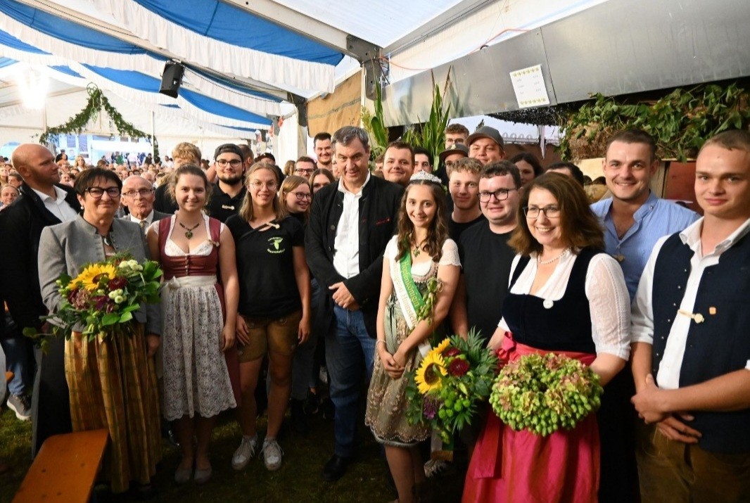 Das Highlight im Jahr ist aber unser traditionelles Hopfenzupferfest, das in diesem Jahr bereits in der 42. Auflage erfolgreich stattgefunden hat. Das Fest findet immer am letzten Augustwochenende statt und dauert drei Tage. Am Freitag starten wir mit den Mountain Beats, einer Partynacht für Alt und Jung. Am Samstag, unser wichtigster Tag, findet die Wahl der Höpfenkönigin statt. Mit Hilfe von befreundeten Vereinen müssen sich die Kandidatinnen während unseres Stimmungsabends kleinen Spielen stellen, um den Gästen zu zeigen, dass sie dem Amt der Hopfenkönigin gewachsen sind. Nach der Wahl wird die alte Hopfenkönigin verabschiedet und die neue Königin gekrönt und von den vielen anwesenden Gastköniginnen in ihre Reihen aufgenommen. Am Sonntag starten wir das Hopfenzupferfest nach der Kirche mit dem gemeinsamen Frühshoppen und Mittagessen mit Blasmusik. Nachmittags gibt es dann Kaffee und Kuchen und abends Brotzeit. Ansonsten ist am Sonntag das Programm nicht festgelegt. Wir organisierten auch schon einmal ein Oldtimertreffen am Sonntag oder einen Gstanzlsänger zur Brotzeit. Auch wird öfters mal ein Politischer Nachmittag oder Abend vom CSU- Ortverband organisiert, so auch im Jahr 2023. Hier besuchte uns unser bayerischer Ministerpräsident Dr. Markus Söder. Ein weiteres Highlight am Sontag ist der alle fünf Jahre stattfindende Festumzug „Hopfen im Wandel Zeit“. Das Fest stemmen wir komplett mit unseren Mitgliedern vom Zubereiten des Essens über den Ausschank bis hin zum selbstgebackenen Kuchen.