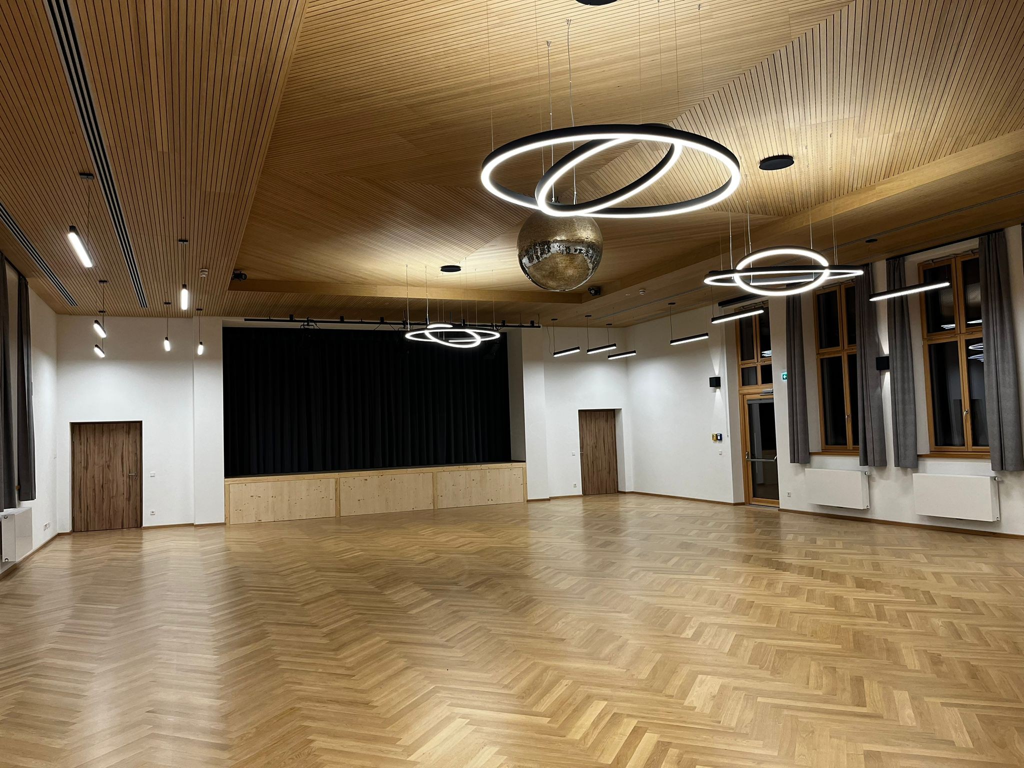Mit dem Projekt wurde im Oktober 2019 begonnen. Beim Umbau hat man sich an der alten Raumaufteilung orientiert, um möglichst viel von der Marke „Happerger“ zu erhalten. Auch die 43 kg schwere Diskokugel, der Boden und die Theke im Stüberl zitieren den Gasthof so, wie man ihn von früher kennt. Bei der Einweihungsfeier gab es aber auch viel neues zu entdecken: ein Bühnenanbau mit Garderobe und WC für Künstler sowie eine Feuerschutztreppe. Das Gebäude ist in allen Stockwerken barrierefrei.