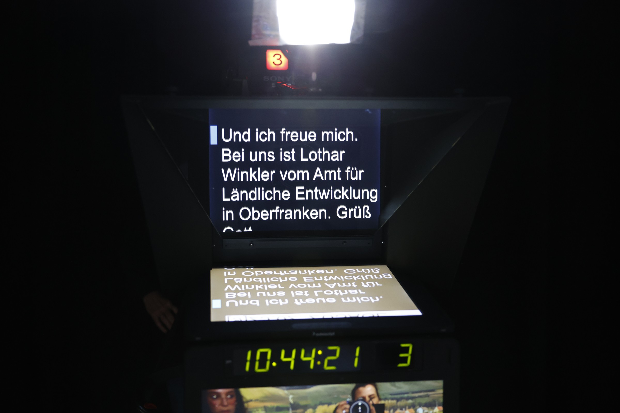Doch bevor Winkler ins Rampenlicht treten durfte, ging es erstmal in die Maske. Wie alle Mitarbeiterinnen und Mitarbeiter, die an der Sendung beteiligt waren, versprühte die Maskenbildnerin eine beruhigende Freundlichkeit und Professionalität, so dass sich der Amtsleiter und auch seine Begleiter herzlich willkommen fühlten.