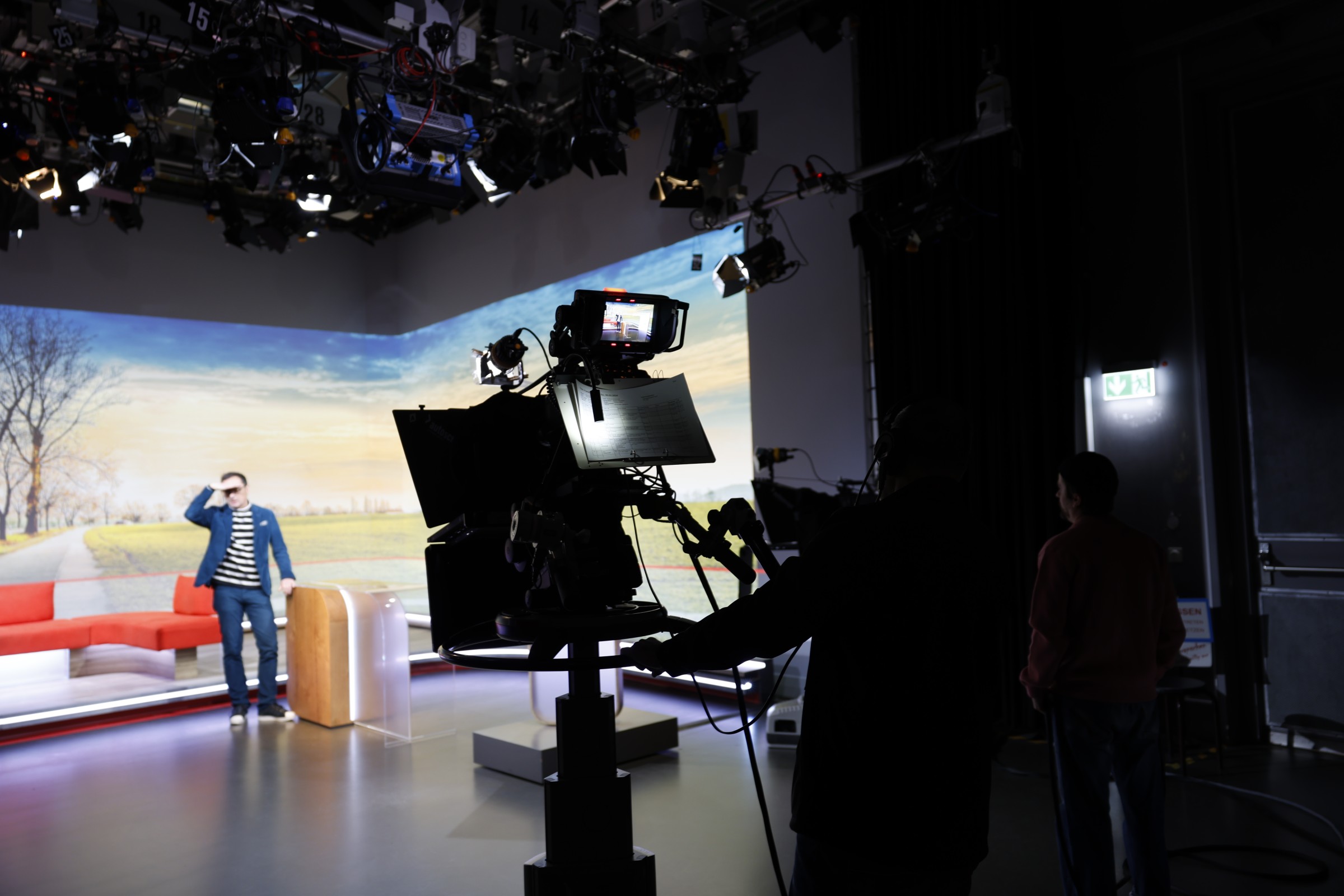 Im Halbdunkeln des Sendestudios dominierte respekteinflößende Technik, doch schon übernahm Moderator Rüdiger Baumann: Er begrüßte Winkler und bat ihn, im hellen Licht auf dem gemütlichen roten Sofa Platz nehmen. Ruckzuck bekam der Amtsleiter ein Mikrofon angesteckt und Tipps zum „faltenfreien Sitzen“, die Anzugjacke wurde ein letztes Mal abgebürstet und schon hieß es „Uuuuuuund bitte!“ und Baumann legte los. „Am Anfang war ich schon etwas aufgeregt, aber nach der ersten Frage hat sich das gelegt und ich habe mich einfach auf den Moderator konzentriert“, erzählt Winkler nach der Aufzeichnung und ergänzt: „Das war auf jeden Fall ein besonderes Erlebnis – auch, sich dann später selbst im Fernsehen zu sehen“.