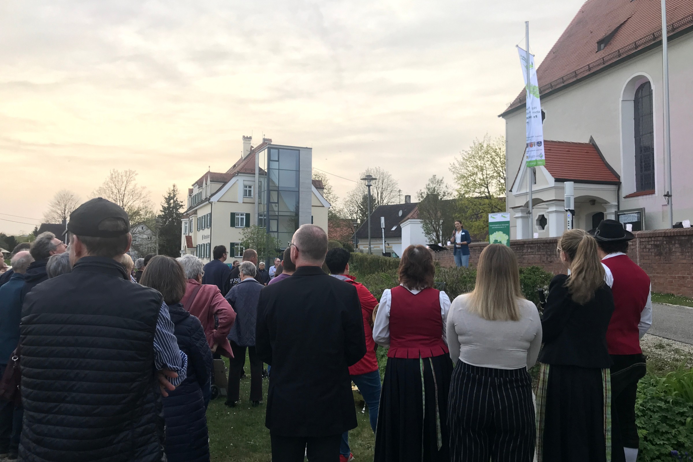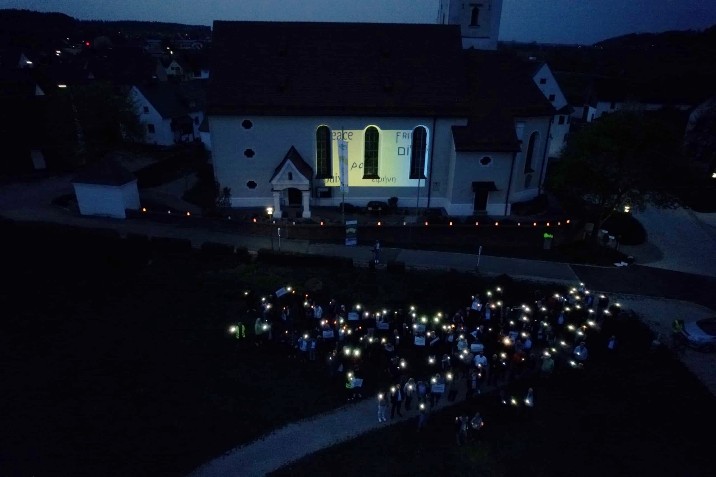 Das betonten auch Dekan Thomas Pfefferer und Clemens Kraus, Vorsitzender des Jugendrates Altenmünster, in ihren Wortbeiträgen. Auch die Vertreter der politischen Parteien mit dem Landtagsabgeordneten Manuel Knoll und Anton Rittel sowie Kreisrat Marwin Hillenbrand bezogen sich in ihren Beiträgen auf die Bedeutung von Demokratie, Vielfalt und Menschenwürde. Die stimmungsvolle Atmosphäre vor der Kirche in der Ortsmitte Altenmünster wurde durch ein eindrucksvolles Lichtermeer abgerundet.