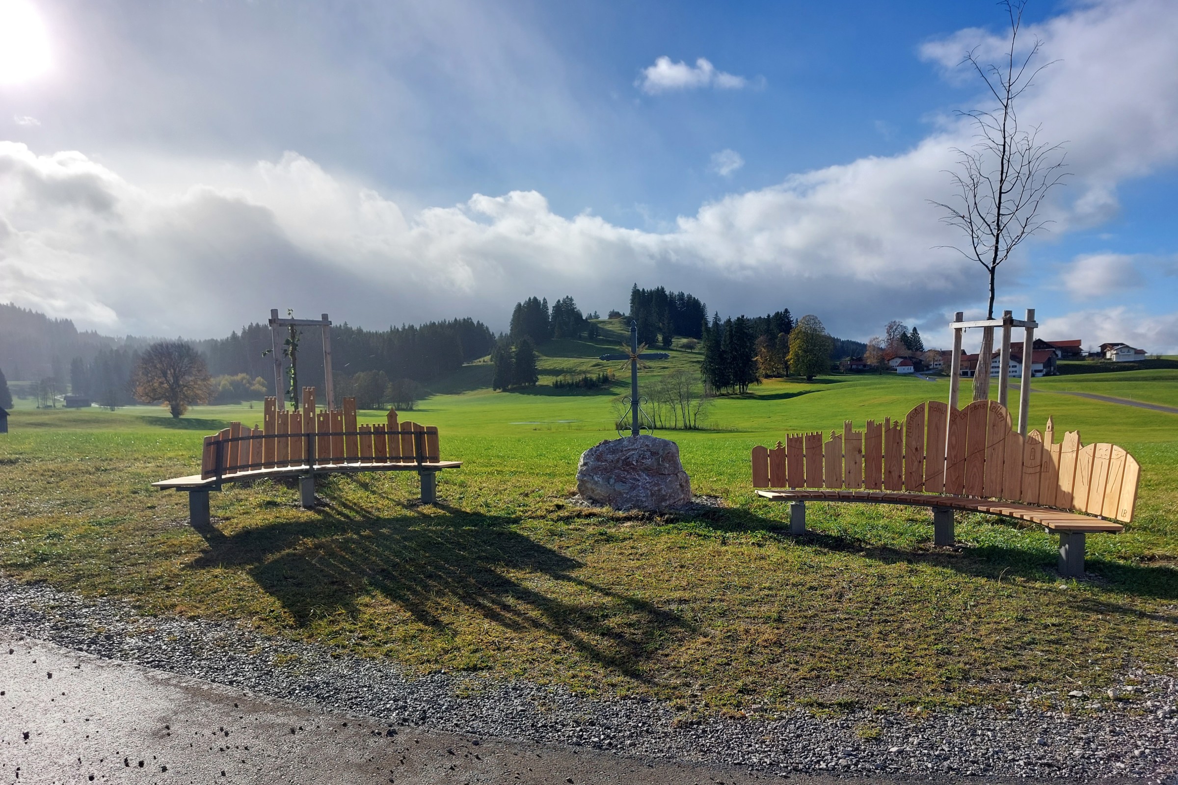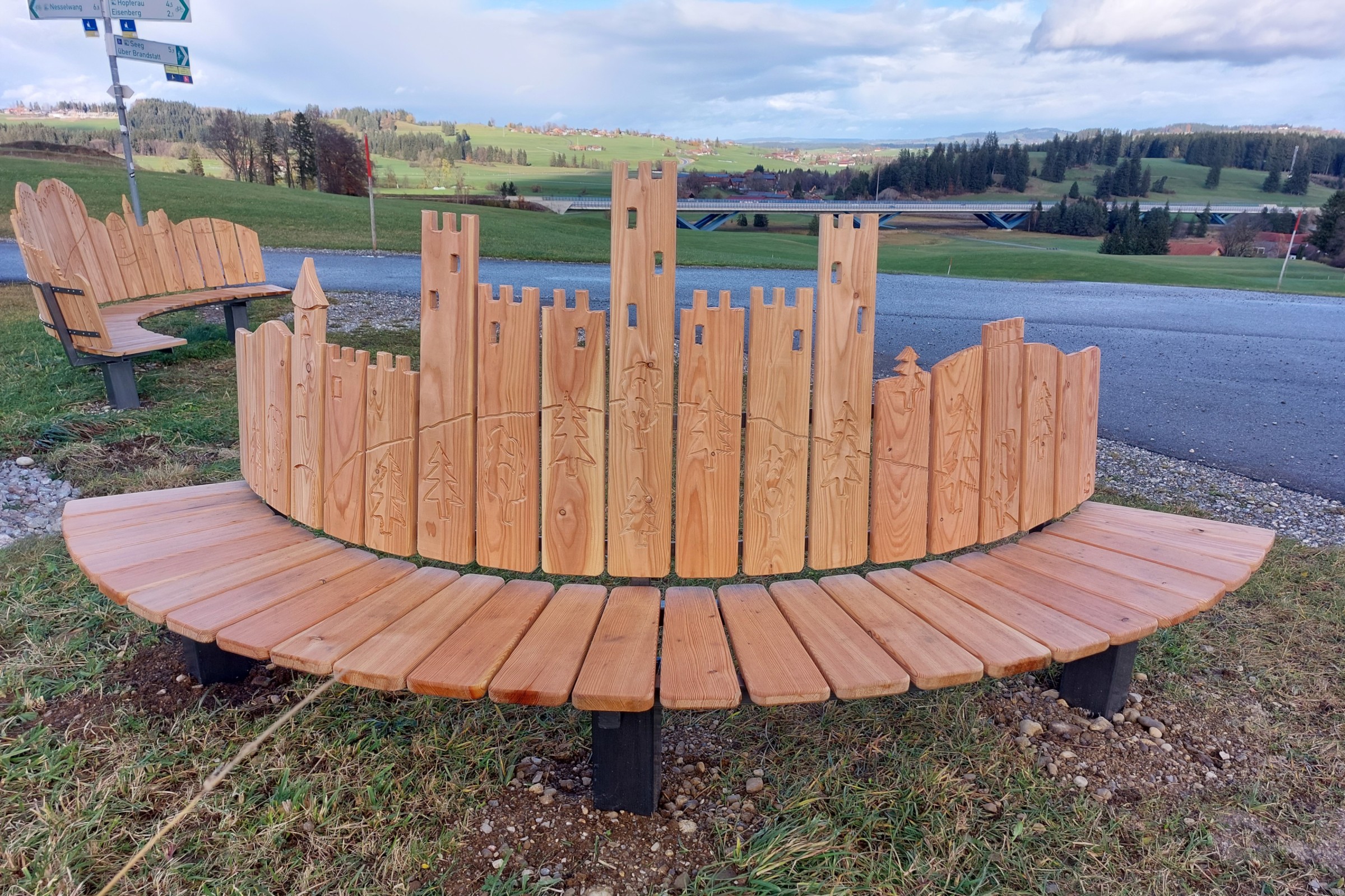 So zieren die halbrunden Bänke nun hölzerne Silhouetten des Breitenberges und