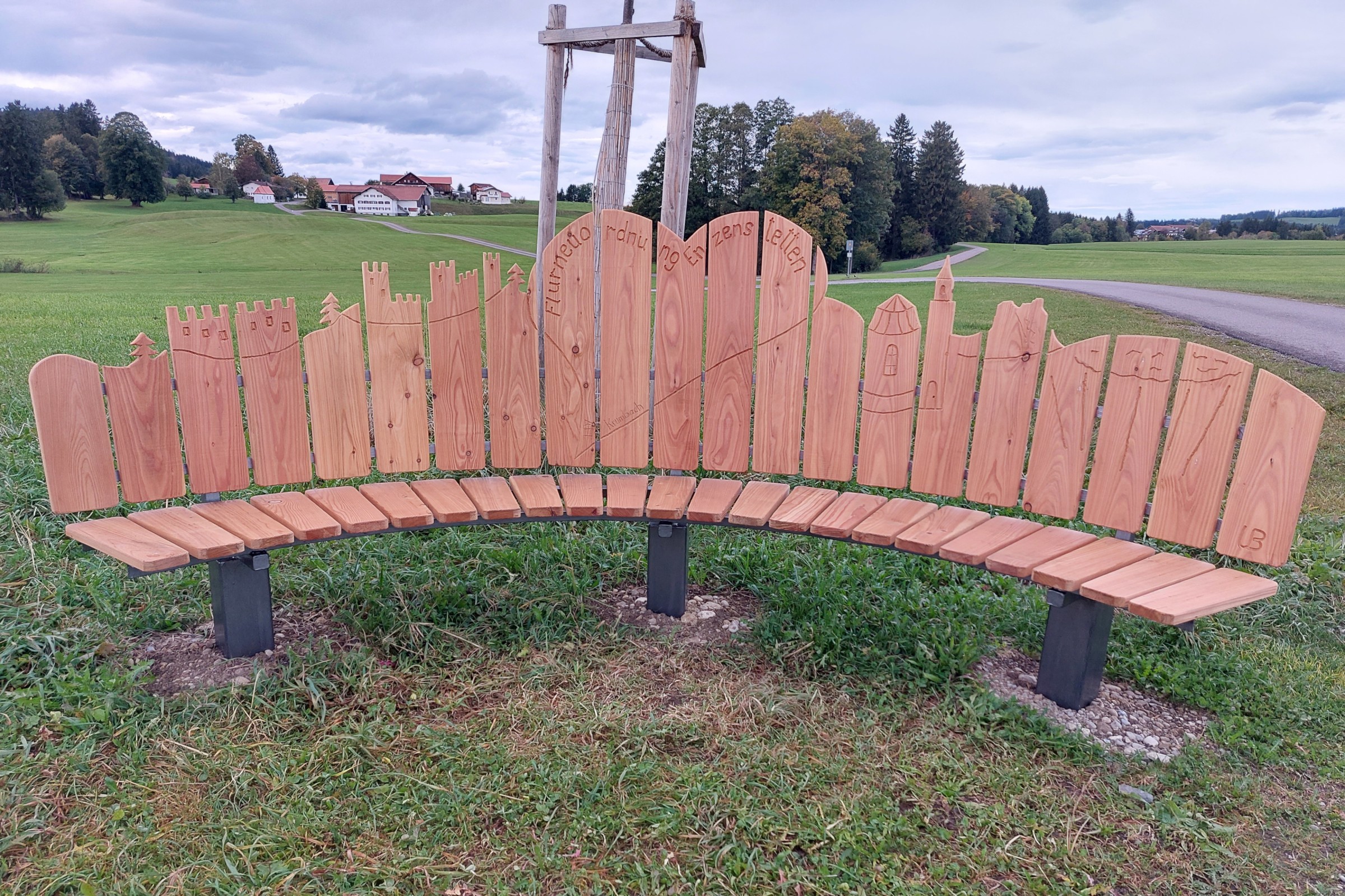 Die Gestaltung übernahm der örtliche Künstler Ulrich Böck, der den Sitzgelegenheiten die Konturen der umliegenden Landschaft und prägender Gebäude verlieh: