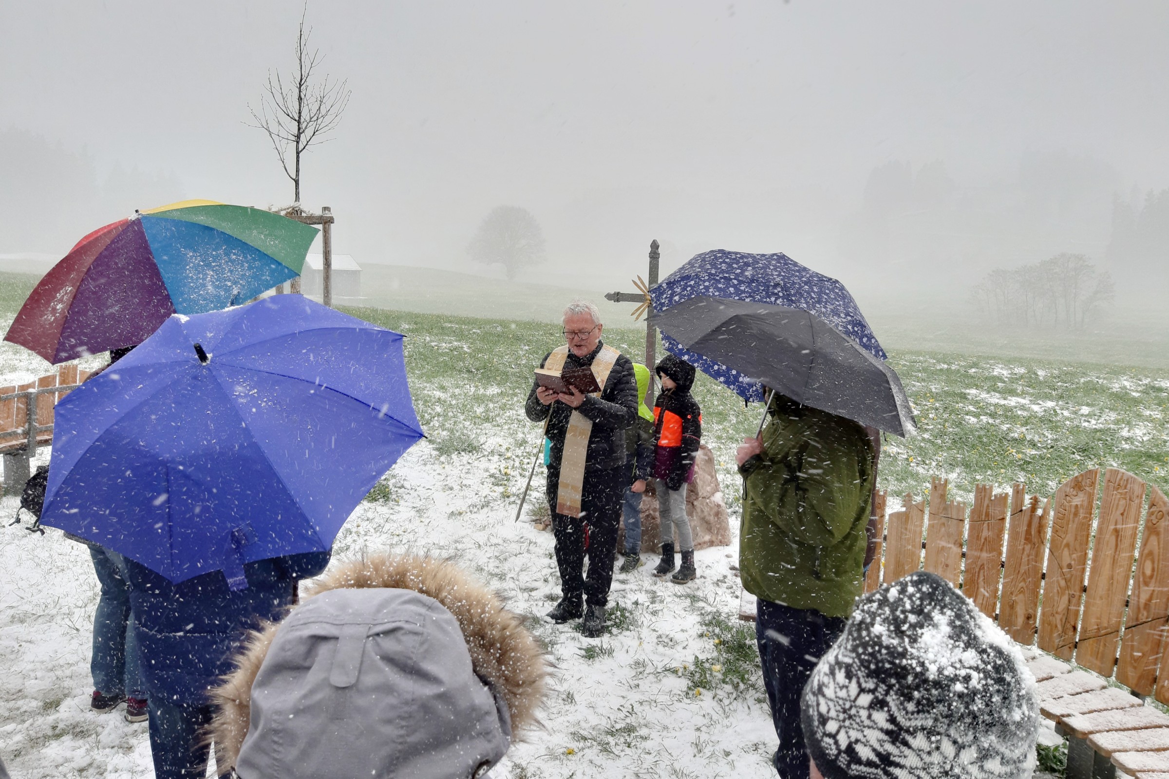 Hohenfreyberg. Das neue Feldkreuz wird von zwei Winterlinden eingerahmt.