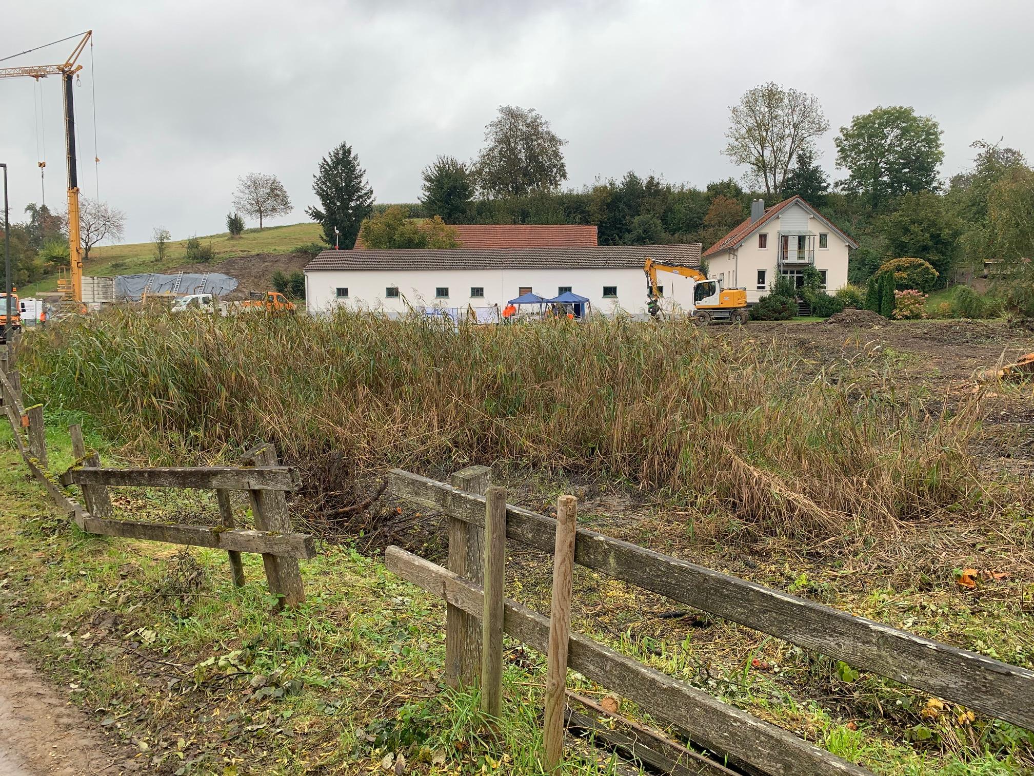 Bis es soweit war, hieß es aber erstmal anpacken: Die Ufer wurden vom dichten Bewuchs frei geräumt, der Blick nach Süden über den Thalhauser Graben in die ansehnliche Landschaft des Tertiärhügellands hinaus wurde geöffnet. Die der Straßenrandbebauung zugewandten Ufer wurden mit Wasserbausteinen in aufwendiger Baggerarbeit befestigt, ein gepflasterter Gehsteig und ein kleiner Platz mit Zugang zum Wasser werten den Bereich auf.