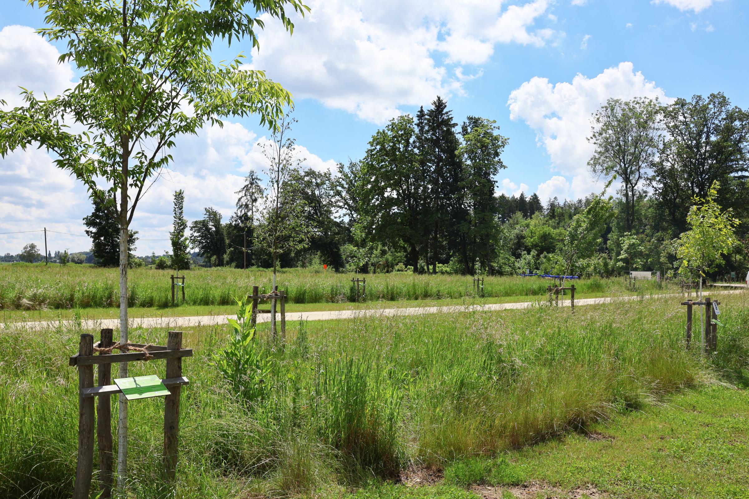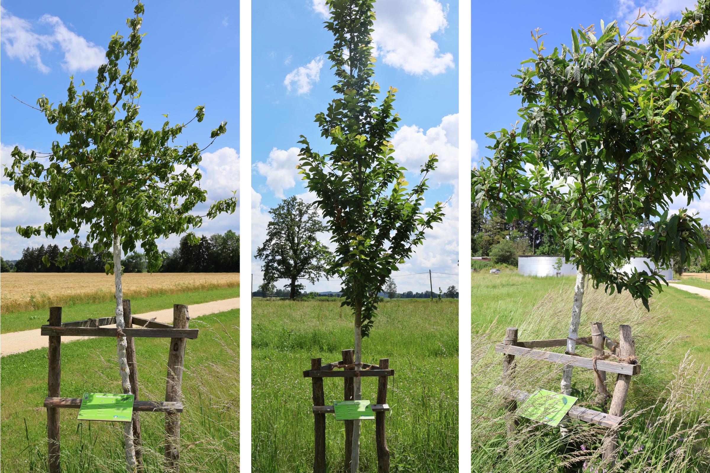 Aktuell sind auch dank der Unterstützung durch die Volksbank Ulm-Biberach rund 50 Bäume gepflanzt und mit Infotafeln versehen. Konkret sind das zum Beispiel Geweihbaum, Zürgelbaum, Bitternuss, Trauben-Eiche und die Japanische Zelkove. Teil des Informationspfads ist aber auch der „Baumkindergarten“: ein umzäunter Bereich, in dem weitere zukünftige Klimabäume geschützt heranwachsen, bis sie groß und stark genug sind, um umgepflanzt zu werden. 111 grüne Hoffnungsträger sollen es insgesamt mal werden. Wann? „Das muss man entspannt sehen“, sagt Gaißmayer. Schließlich hat jeder Baum sein eigenes Tempo.