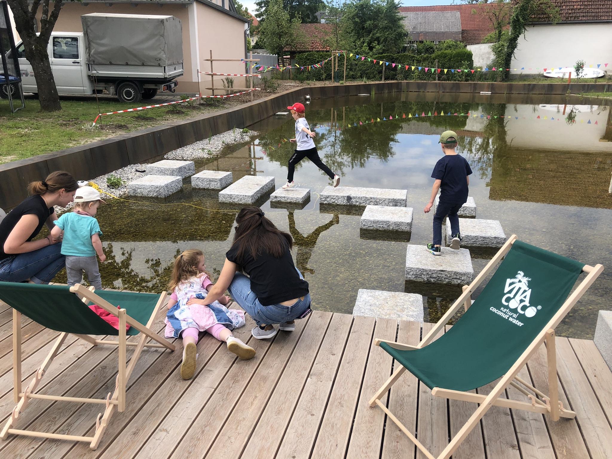 Die feierliche Einweihung wurde zu einem Dorf- und Familienfest und so als sozialer Treffpunkt bestens angenommen. Doch es wurde nicht nur gefeiert – beim Oberlacha Dampfer Wettbewerb stachen auch 51 selbstgebastelte Schiffe in See und bewiesen ihre Schwimmtauglichkeit. Nach der Bewertung von Kreativität und Schwimmtauglichkeit erhielten die drei Erstplatzierten und auch alle anderen Teilnehmenden verschiedenste Preise. Im Verlauf des weiteren Nachmittags zeigte sich, dass die neue Ortsmitte sicher auch in Zukunft vielseitig genutzt werden kann.