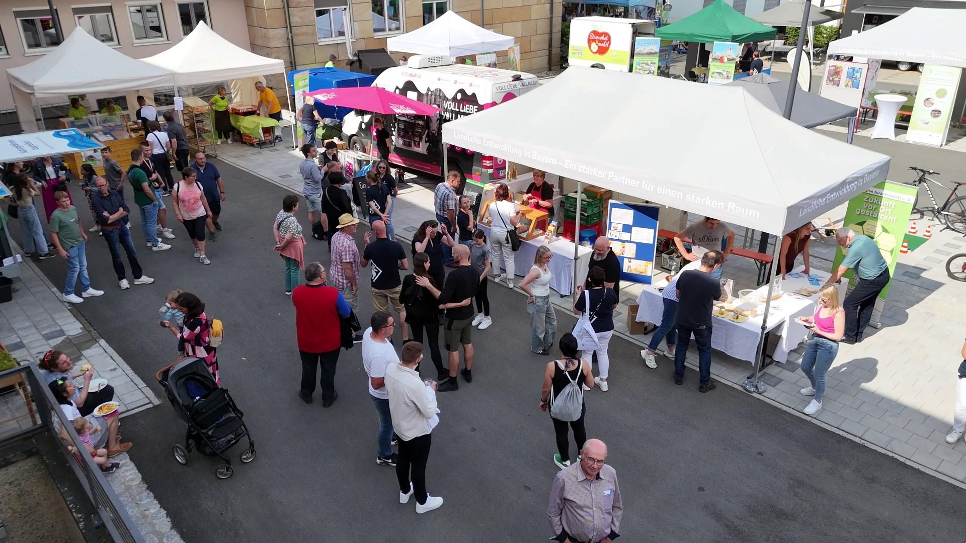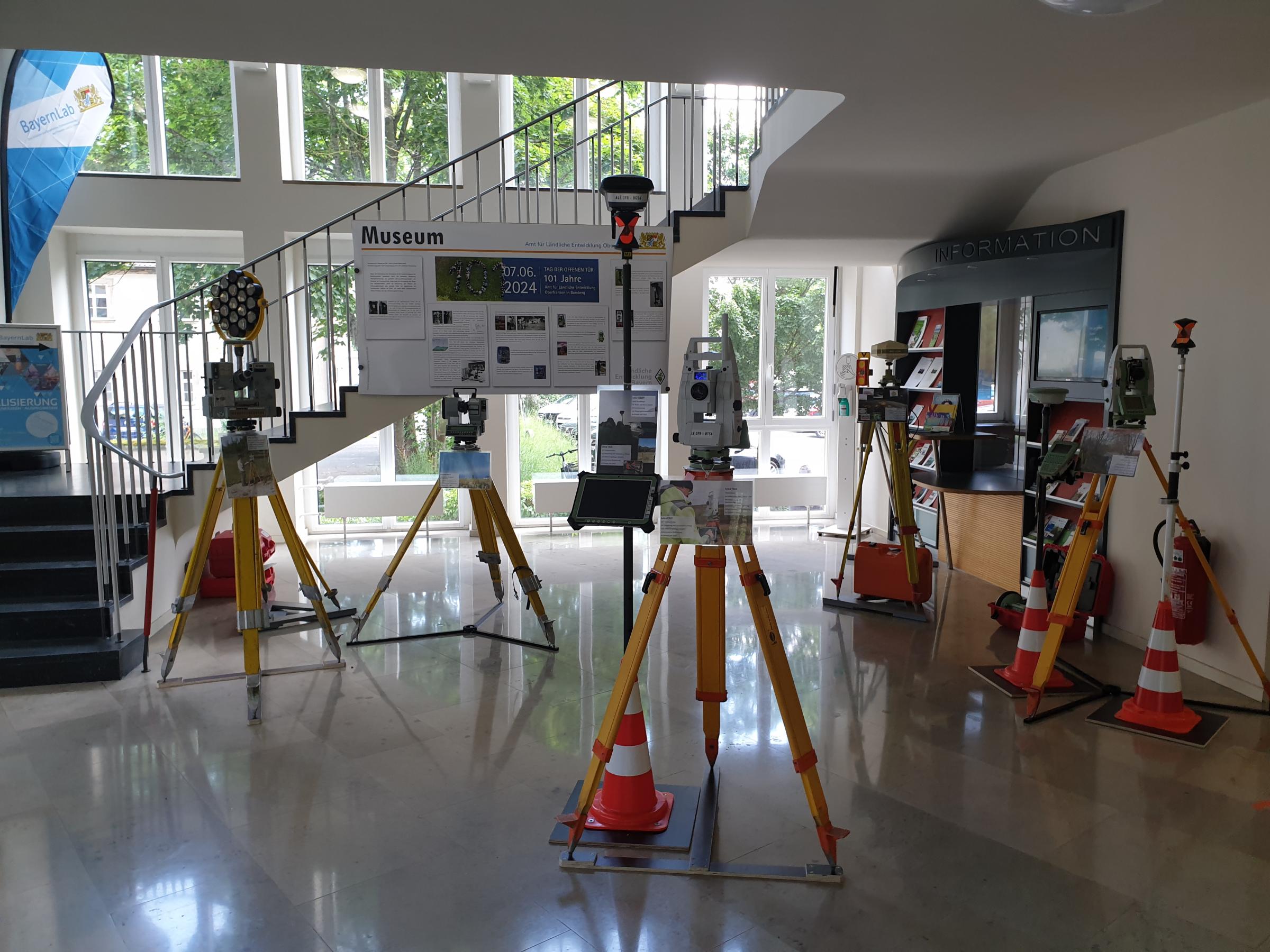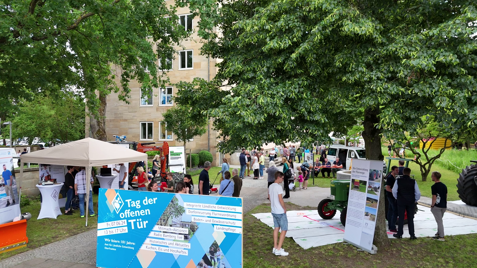Vermesser-Olympiade und Obstbaum-Tombola, Hüpfburg, Kinosaal, Wasserspiele, futuristische Technologien und historischer Rückblick – die Besucherinnen und Besucher aus den Landkreisen und Städten erlebten an diesem Nachmittag eine Behörde „zum Anfassen“. Dabei wurde schnell klar, was es mit Flurneuordnung, Dorferneuerung, Landespflege, Hochwasserschutz oder Integrierter Ländlicher Entwicklung (ILE) auf sich hat. An zahlreichen Ständen rund um das Amtsgebäude und im Haus konnten sich große und kleine Gäste anhand von abwechslungsreichen Mitmach-Aktionen, Präsentationen, Filmen und Plakaten informieren. Mit im Boot waren auch die Partner des Amtes, beispielsweise aus den Integrierten Ländlichen Entwicklungen, den Öko-Modellregionen, des BayernLab und des benachbarten Amtes für Ernährung, Landwirtschaft und Forsten.