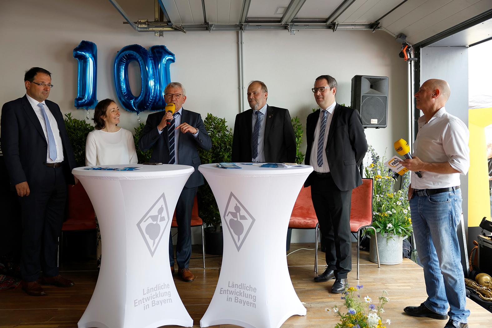 Auch die rund 150 zum offiziellen Festauftakt geladenen Gäste – Landtagsabgeordnete, Landräte, Bürgermeisterinnen und Bürgermeister aus allen oberfränkischen Kommunen, Vertreterinnen und Vertreter der Ämter und der Stadt Bamberg - waren begeistert. MdL Martin Schöffel, Staatssekretär im bayerischen Staatsministerium für Finanzen und Heimat, betonte in der von Radio-Bamberg-Moderator Marcus Appel geleiteten Gesprächsrunde auf der Bühne: „Das ALE Oberfranken ist in jeder Hinsicht ein verlässlicher und professioneller Partner für unsere ländlichen Gemeinden und hat einen wichtigen Anteil an der positiven Entwicklung der letzten Jahre“.