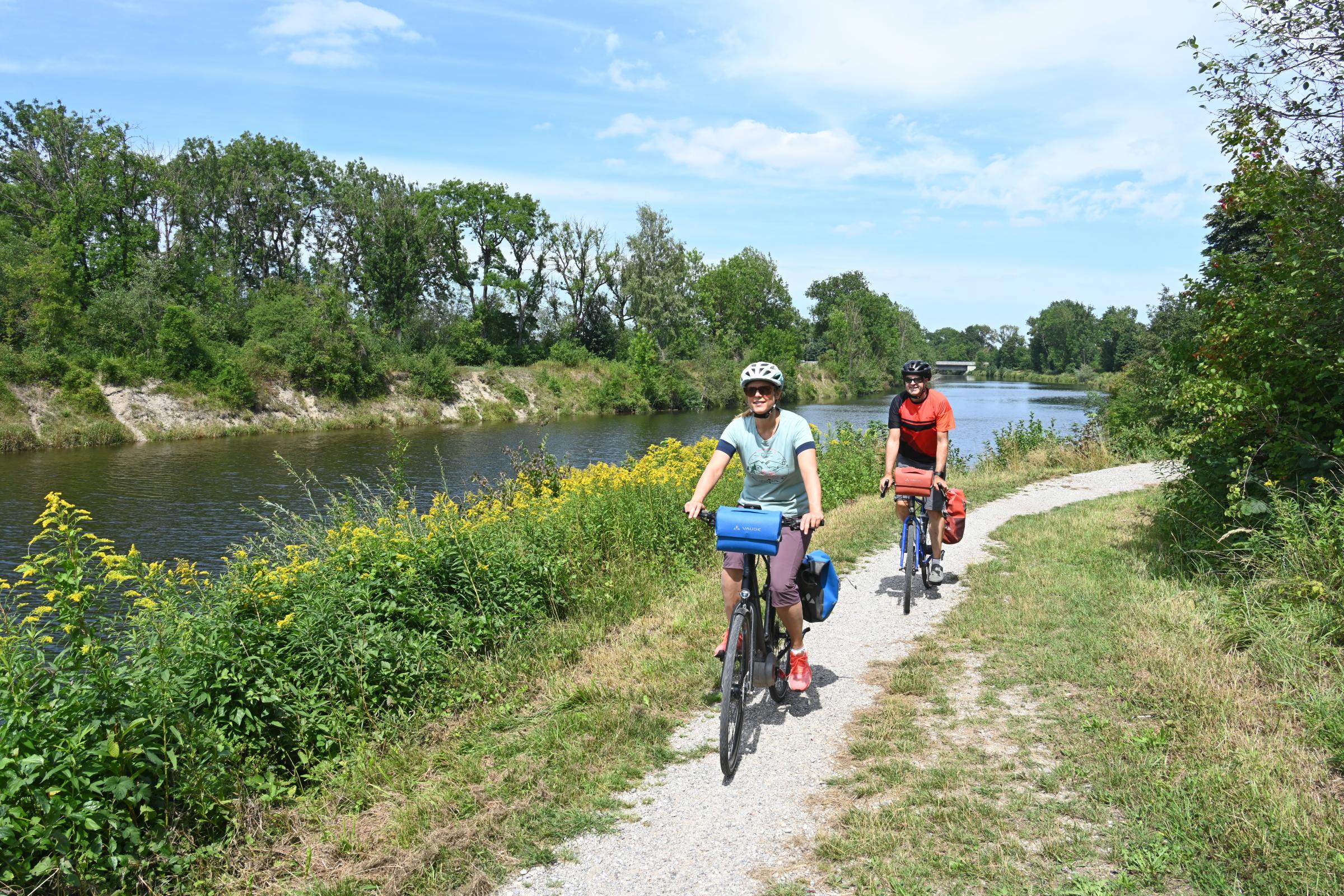 „Die Radrundtouren wurden mit Bürgern vor Ort entwickelt“, erklärt Raphael Morhard, der als Umsetzungsbegleiter in der Integrierten Ländlichen Entwicklung zwischen Lech und Wertach tätig ist. Erster Schritt war es, die in Frage kommenden Routen zu identifizieren und erfassen, ehe ein externer Anbieter sie professionell aufbereitete. Die fertige, mit Bildern und Beschreibungen versehene Web-Applikation ermöglicht es, die Touren als gpx-Daten herunterzuladen, um sich dann mobil auf dem Smartphone alles Wichtige anzeigen zu lassen: Position, Strecke, Höhenprofil oder nahe Sehenswürdigkeiten. Umsetzungsbegleiter Morhard hat bereits die „Wasserschleife“, Rundtour Nummer 4, getestet – und das gegen den Uhrzeigersinn und damit in die entgegengesetzte Richtung. „Das geht genauso gut“, berichtet Morhard.