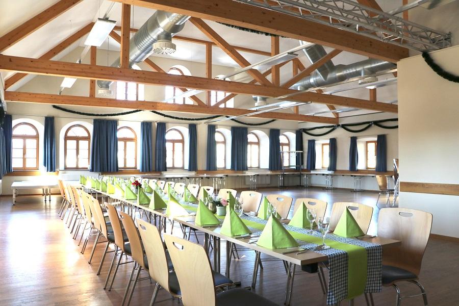 Im Bürgersaal des Obergeschosses finden bis zu rund 200 Personen Platz. „Die moderne Technik und eine bewegliche Bühne werden intensiv für Theateraufführungen, Bälle, private Feiern und weitere unterschiedliche Veranstaltungen in Anspruch genommen“, sagt Werner Disterer. Während der Theatersaison sorgt eine Tribüne für bessere Sicht. Auch die Trachtler, die Sportvereine und Schützen nutzen den Mehrzweckraum als Übungs- und Proberaum. Im Dachgeschoss sind neben einem Aufenthaltsraum, ein elektronischer Schießstand, ein Sportverein sowie das Pfarrarchiv beheimatet.
