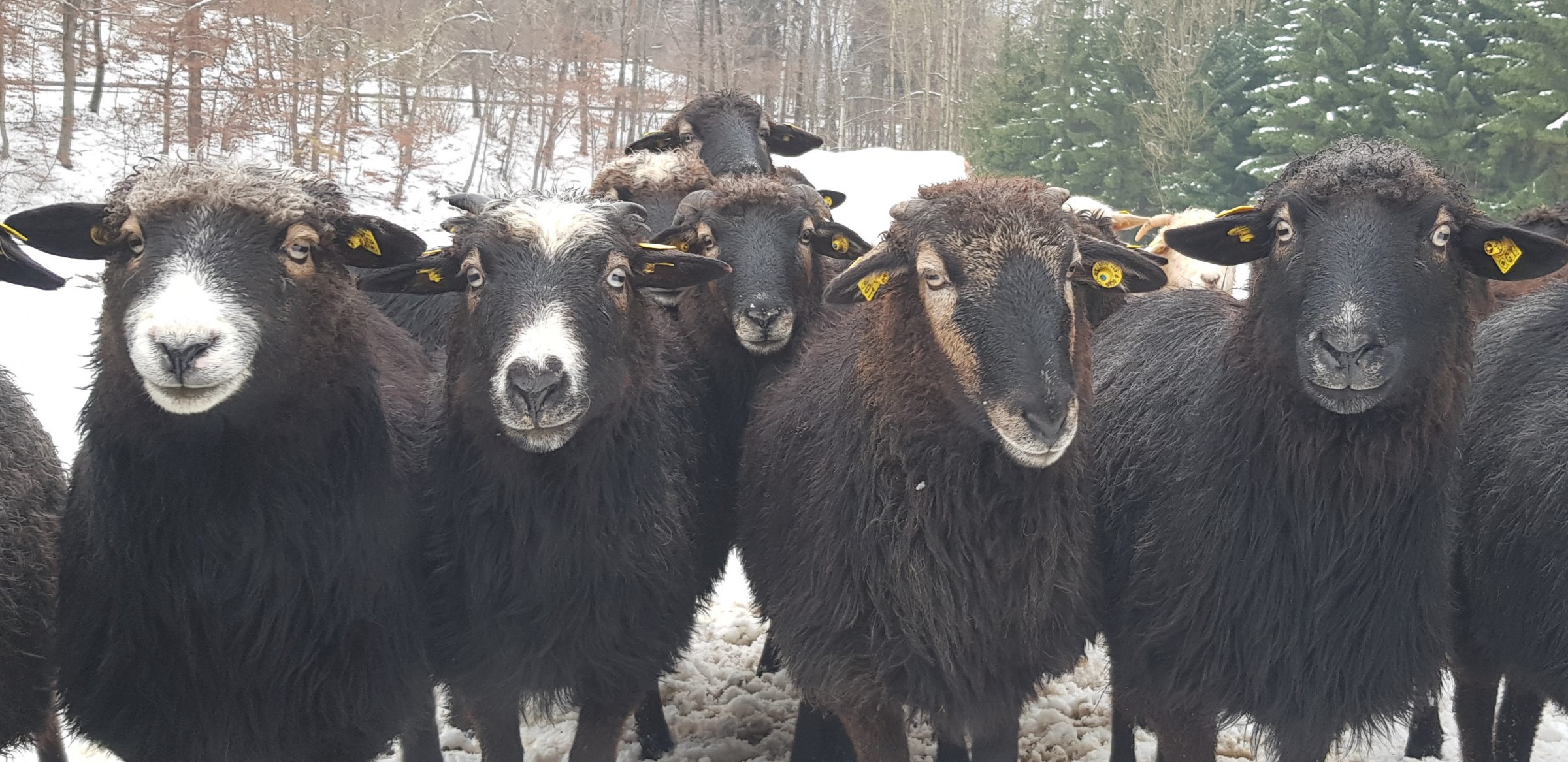Das Krainer Steinschaf, eine sehr alte, vom Aussterben bedrohte Milchschafrasse aus Slowenien ist der zweite emsige Landschaftspfleger. Grimms schätzen sie: „Diese Rasse ist sehr robust, genügsam und sehr ursprünglich. Sogar Ötzi hatte bereits so ein Fell bei sich. Das Krainer Steinschaf ist zwar den Leistungsrassen unterlegen, weil es kleiner ist. Dafür ist es viel unempfindlicher gegenüber Krankheiten und zieht seine Lämmer sehr vorbildlich auf.“ Denn in der Ziegenschäferei wachsen die Lämmer bei ihren Müttern auf.