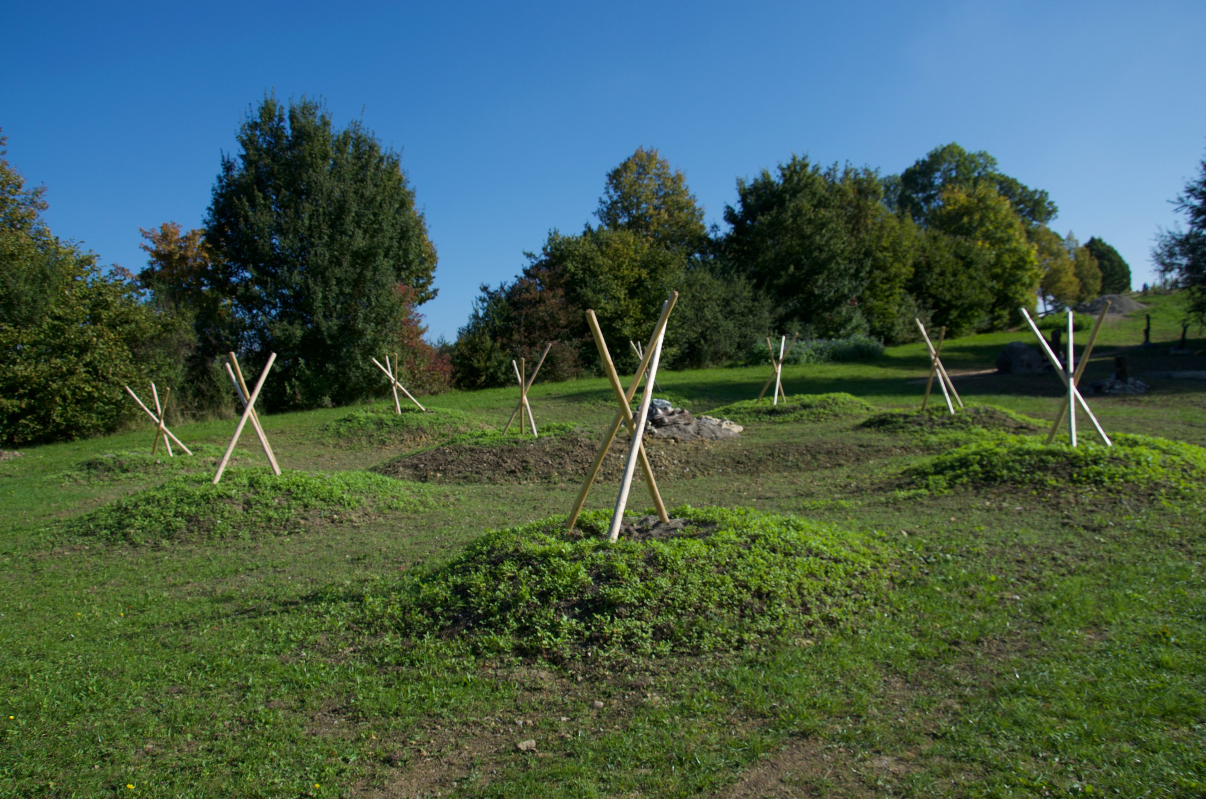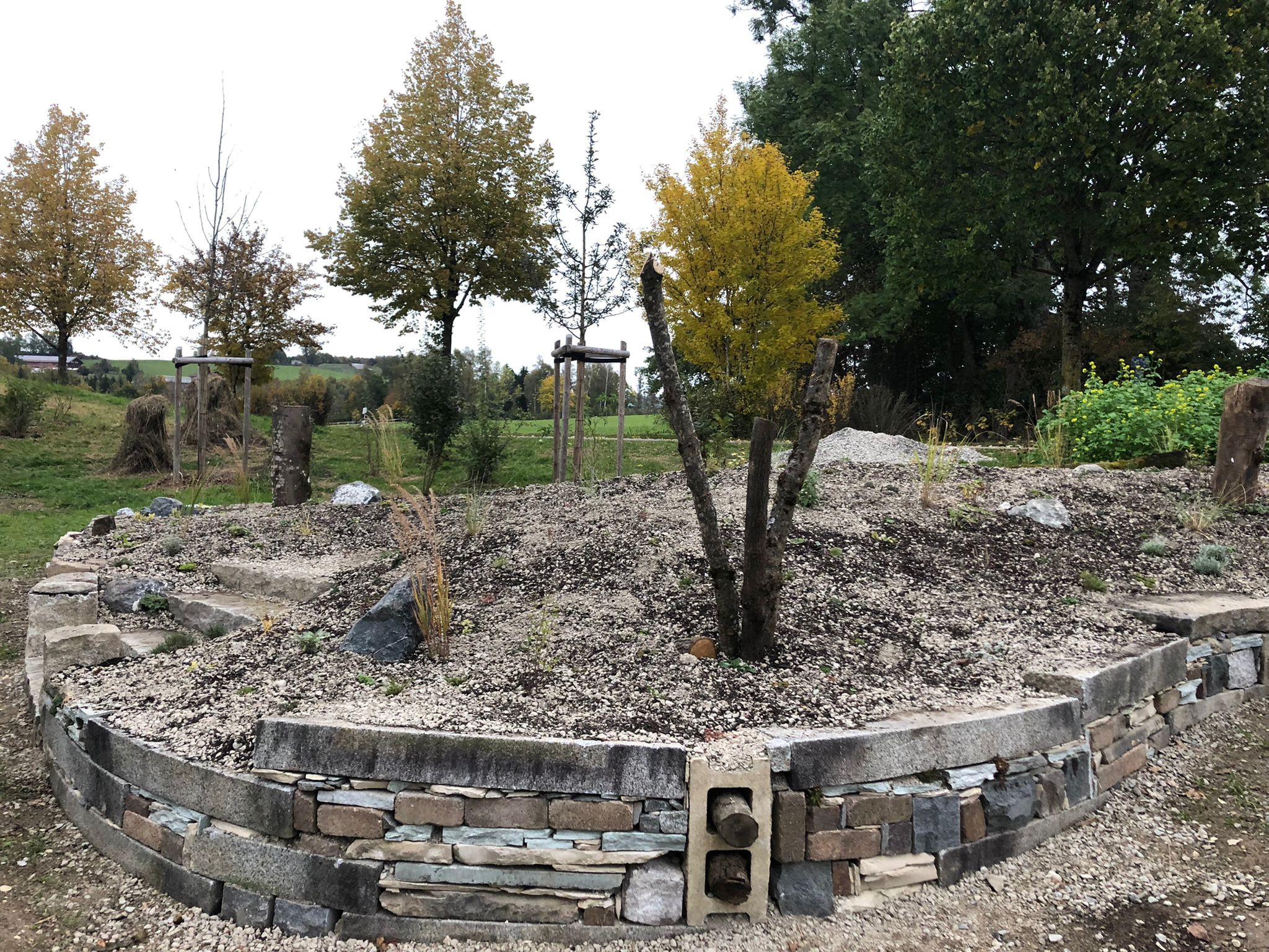 An diesem Prozess beteiligen sich die Menschen aus der Umgebung mit enormem ehrenamtlichen Engagement. Natürlich gibt es einen Plan, den Christof Wegner zusammen mit der Landschaftsarchitektin Petra Walser ausgearbeitet hat. Aber im Hortus natura arbeiten sie nicht nur nach Plan, sondern in erster Linie nach dem Prinzip Natur. Und dieser Blick auf die Natur ist es, mit denen plötzlich andere Sichtweisen auf das Leben entstehen, das hat Christof Wegner schon bei vielen Projekten erlebt. „Probleme lösen wir mit dem, was wir vor Ort haben“, erzählt er. So war es auch mit den Bodenbedingungen, die sie im Garten haben. Lehmige Aushuberde, alles andere als ideal, um Obstbäume hinein zu pflanzen. Da muss man sich auch einfach mal vom Plan verabschieden. Deshalb haben sie aus dem Material eine Erdmodellierung gemacht, die das Oberflächenwasser ableitet, und kleine Hügel geformt, die wie Vulkankegel aussehen. Dort hinein werden sie im Frühjahr 2022 die Apfel- und Zwetschgenbäume in passendes Substrat pflanzen. „Ein Experiment“, sagt Christof Wegner, und er sieht darin noch ganz andere Auswirkungen.