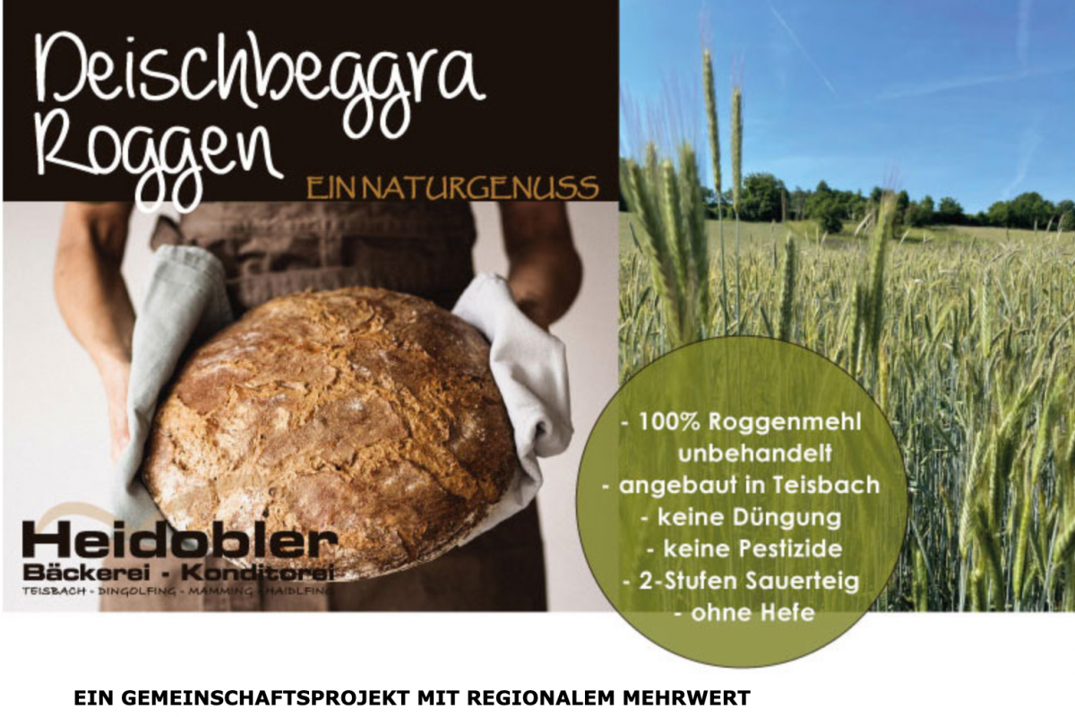 Drei Zutaten braucht ein gutes Brot. Mehl, Wasser und Salz. Wenn dazu noch drei Pioniere kommen, die sich Gedanken um Regionalität und nachhaltiges Wirtschaften machen, wird das Brot nicht nur gut, sondern zu einem Produkt, das für Naturschutz steht und den Menschen wieder einen Bezug zum Wert der Grundnahrungsmittel vermittelt. Der Landwirt Max Garr, der Bäcker Klaus Heidobler und die Weiss-Mühle in Bruckmühl haben mit dem Artenschutzbrot von Teisbach genau das im Sinn. Seit März 2022 gibt es in der Bäckerei Heidobler ein Roggenbrot zu kaufen, für das sich die drei zusammengetan haben.