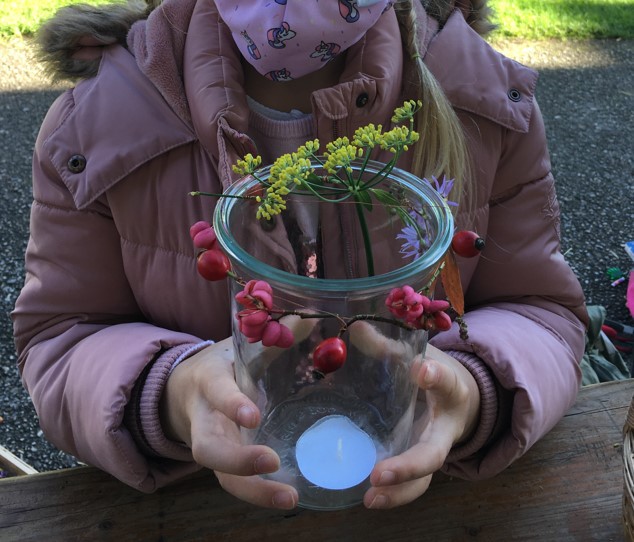 Durch das Gestalten von Werkstücken konnten die Kinder Pflanzenteile sammeln, die für sie von Form und Farbe ansprechend waren. Somit prägen sie sich die einzelnen Pflanzen ein und lernen sie zu mögen und zu schätzen. Mit dem selbst angefertigten Werkstück konnten die Eltern begeistert werden für die Schönheiten vor der Haustüre.
