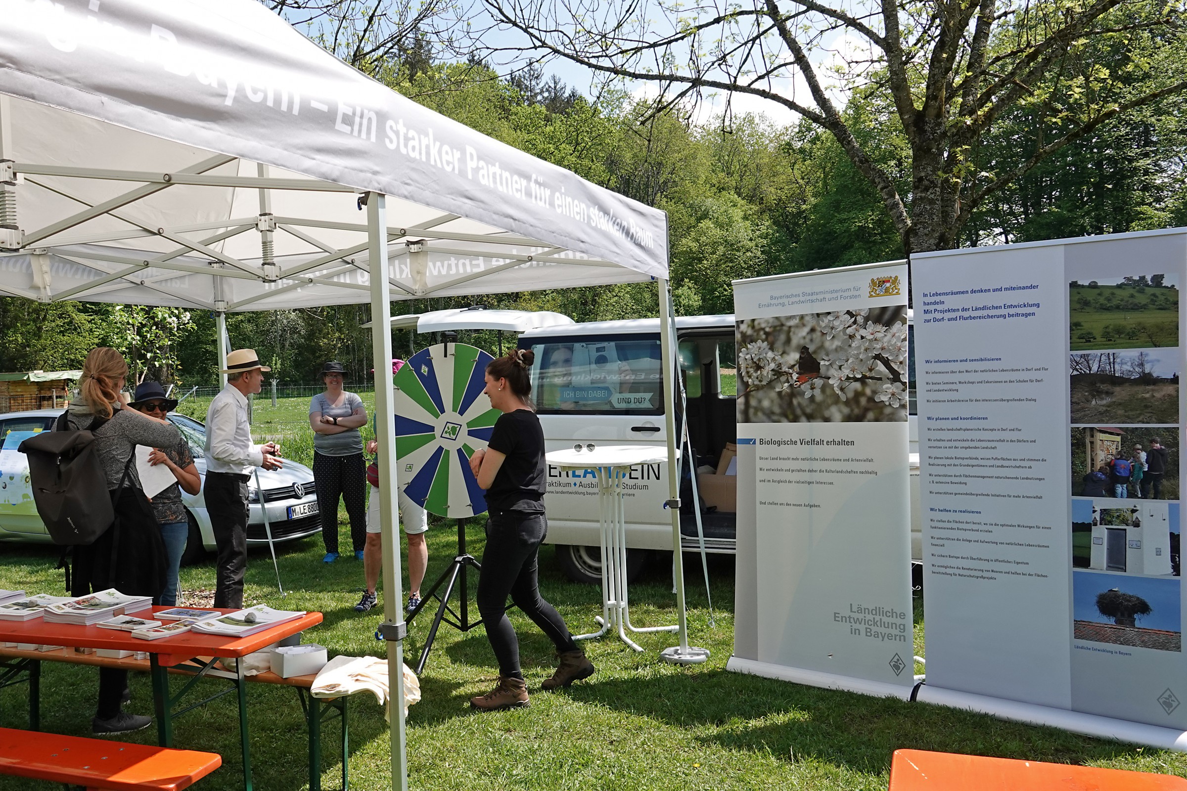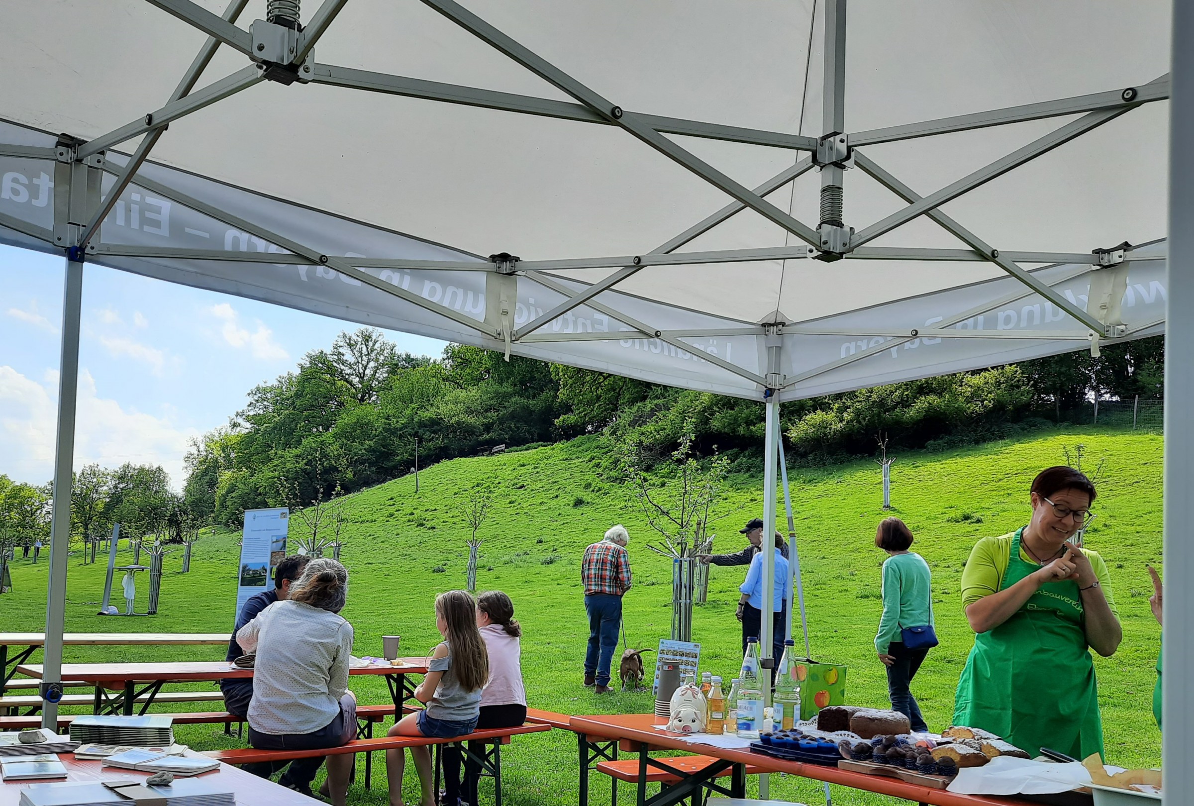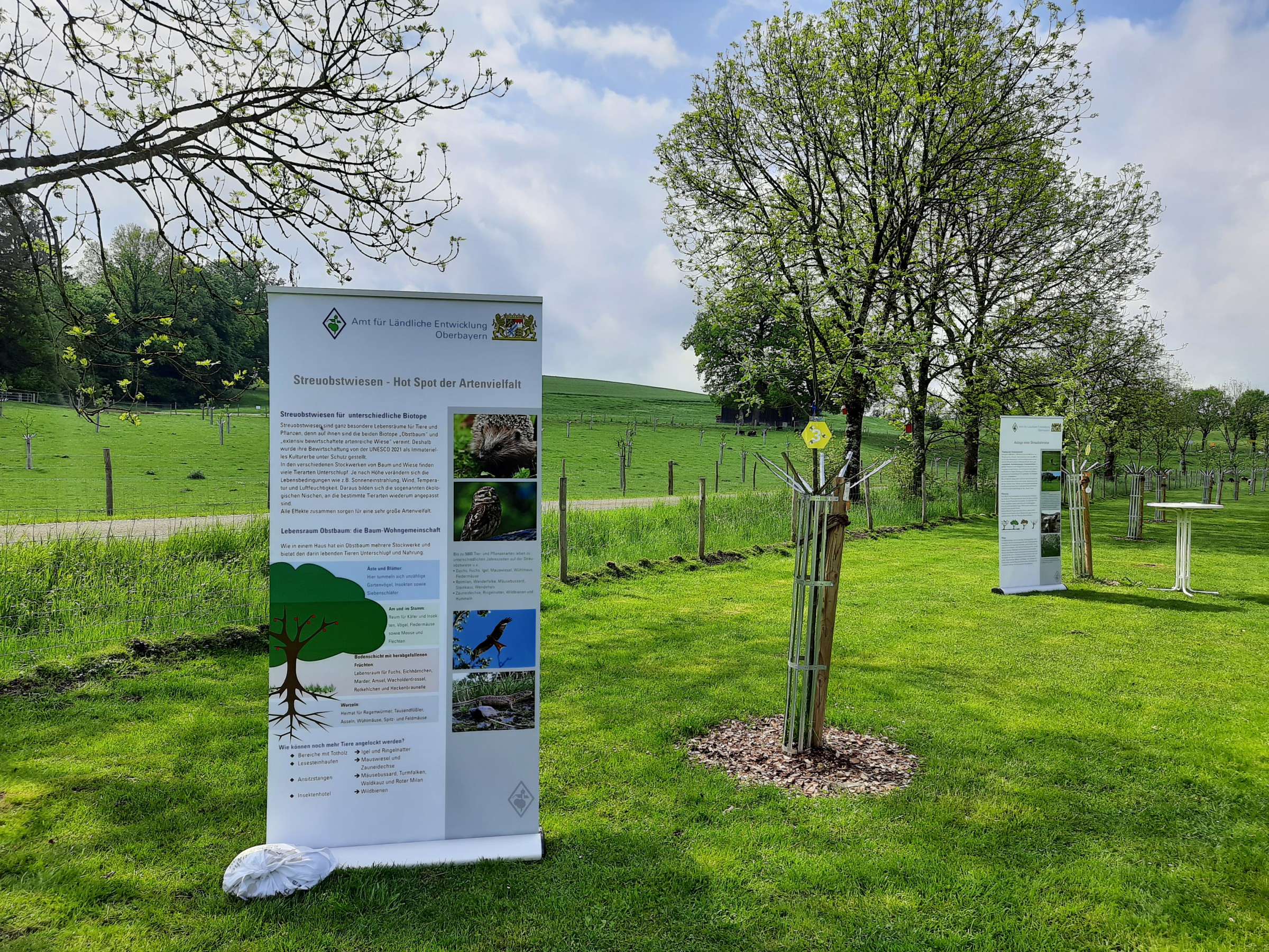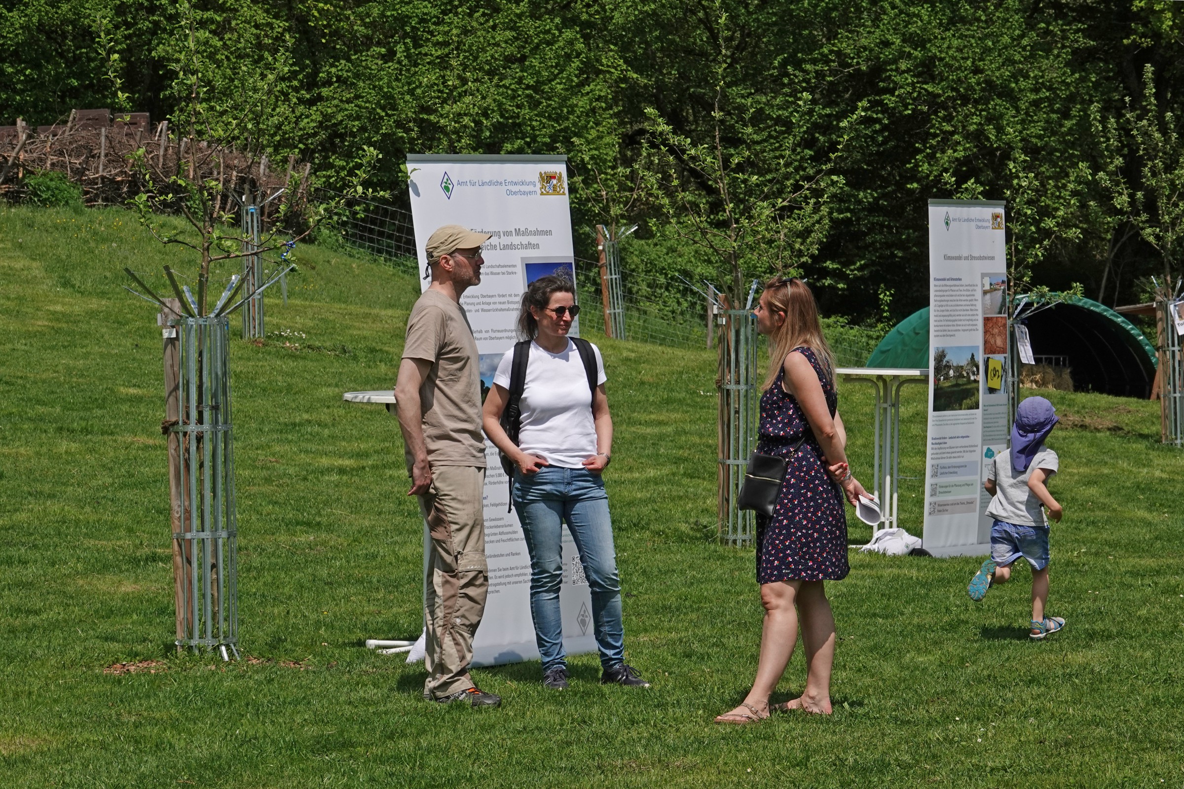 Beim Rundgang durch einen Wissensparcours zu den Themen „Klimawandel, Streuobstwiese – Hotspot der Artenvielfalt, Pflanzung und Pflege einer Streuobstwiese, Schafe, Bienen und dem Förderprogramm FlurNatur“ konnten sich die interessierten Besucherinnen und Besucher allerhand Wissenswertes anlesen und mit etwas Glück und den neu erworbenen Kenntnissen einen kleinen Gewinn mit nach Hause nehmen.