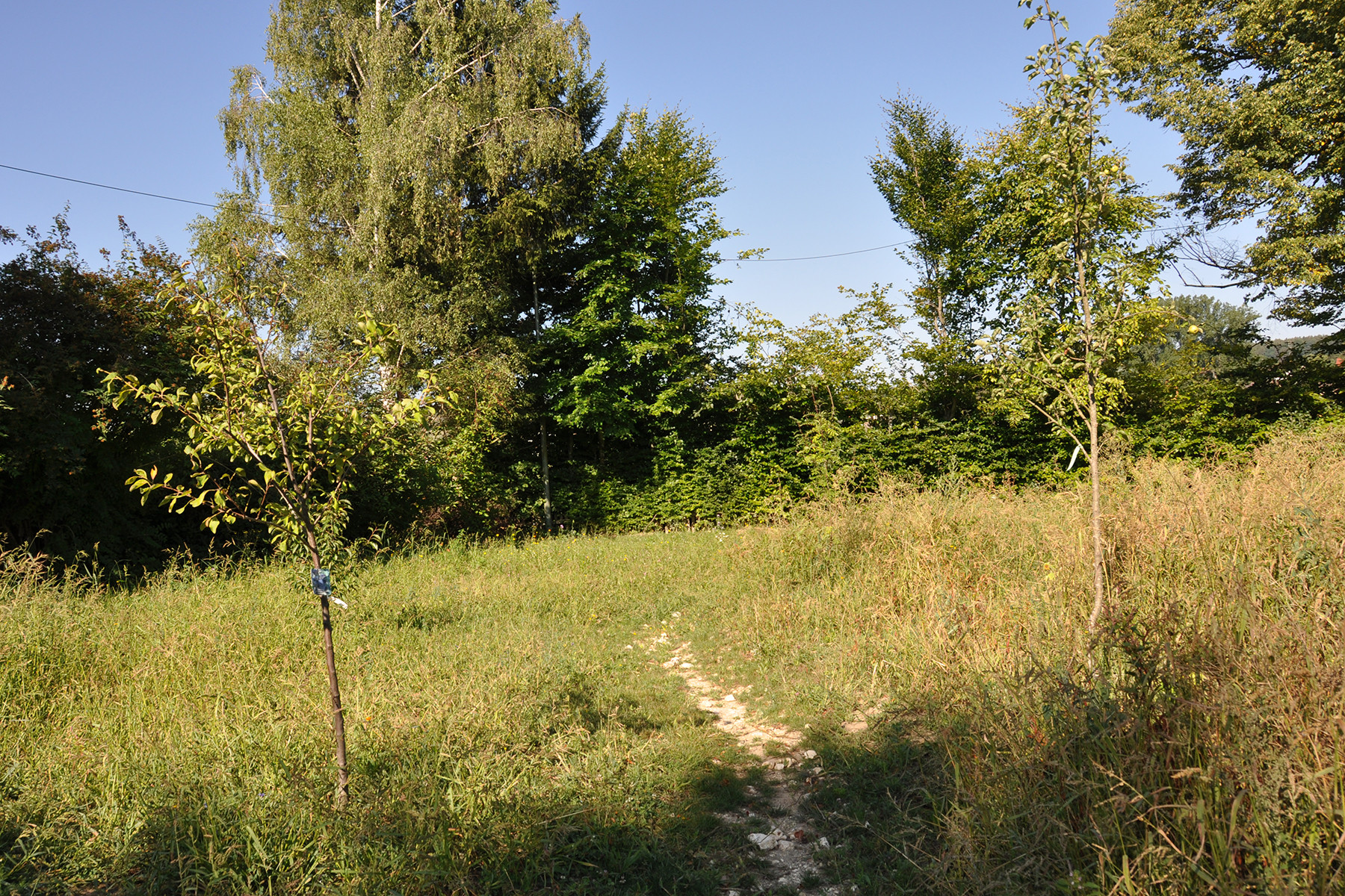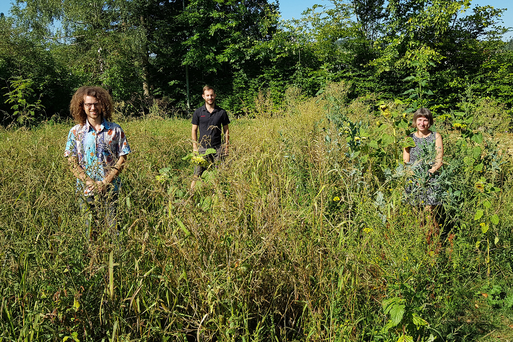 „Früher waren hier mal viele Streuobstwiesen“, erzählt Pascal Deuber beim Beratungstermin und deutet auf die umliegenden Flächen, auf denen nur noch vereinzelt Bäume stehen, „das würden wir hier auch gerne wieder mit aufnehmen.“ So hat in einem anderen Teil der Fläche auch dieses Element seinen Platz gefunden. Die neuen Obstbäume sollen in Zukunft Nahrung für Insekten und Nistmöglichkeiten für Höhlenbrüter bieten. Bis die Bäume einmal so weit sind, wird die Maßnahme durch Nisthilfen ergänzt.