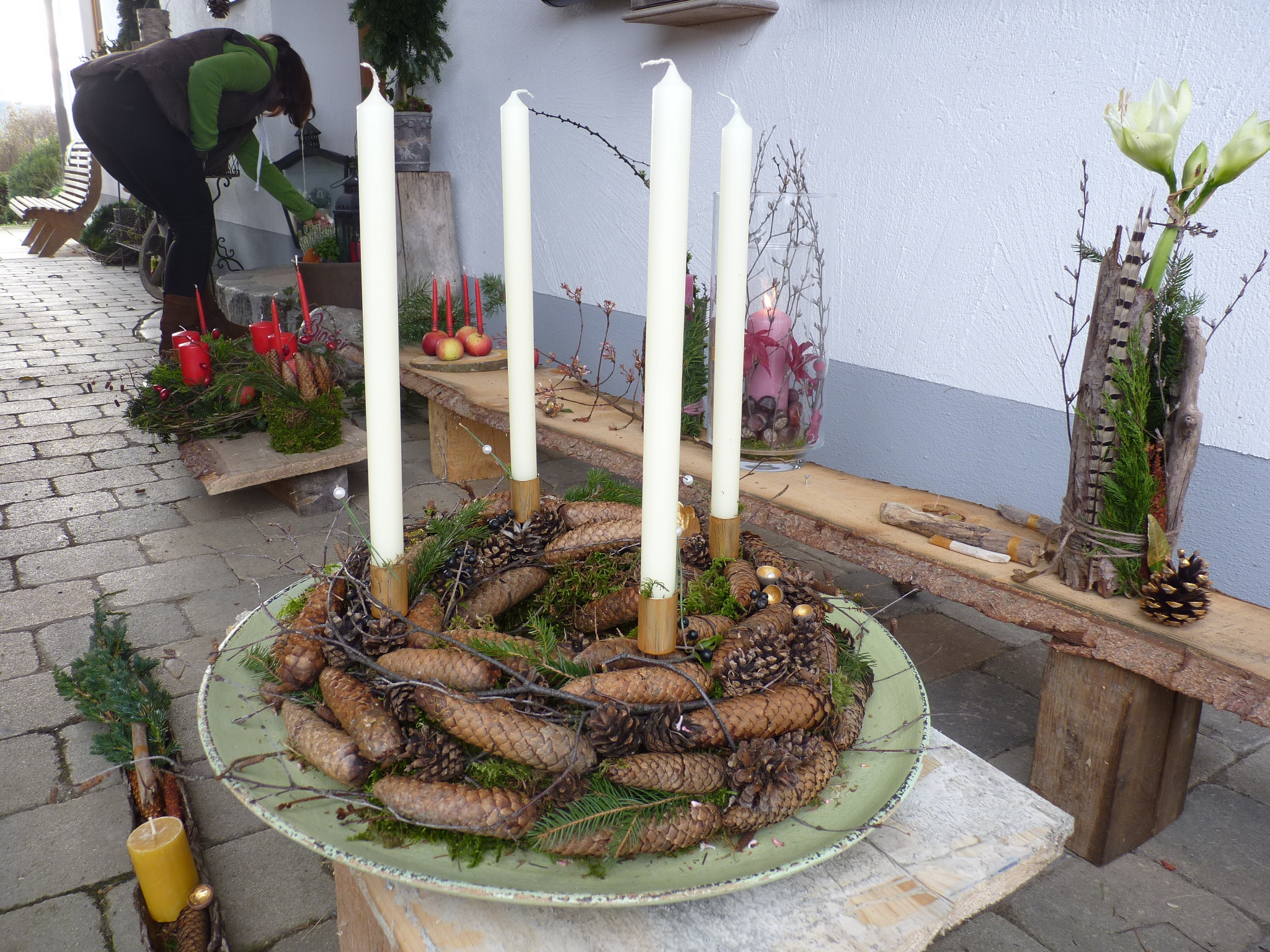 Auch das Warten auf Weihnachten beginnt in dieser Zeit und wird mit dem Adventskranz zu einer besinnlichen Zeit bis Christi Geburt. Der ursprüngliche Adventskranz wurde 1839 von dem evangelisch-lutherischen Theologen Johann Hinrich Wichern eingeführt, womit er armen Straßenkindern des beginnenden Industriezeitalters die Zeit bis Weihnachten verkürzen wollte. Mit diesen einleitenden Worten begann die Referentin Regina Kaufmann ihren Advents-Naturfloristikkurs in Dirnberg auf dem Biohof von Magret und Franz Binsteiner.