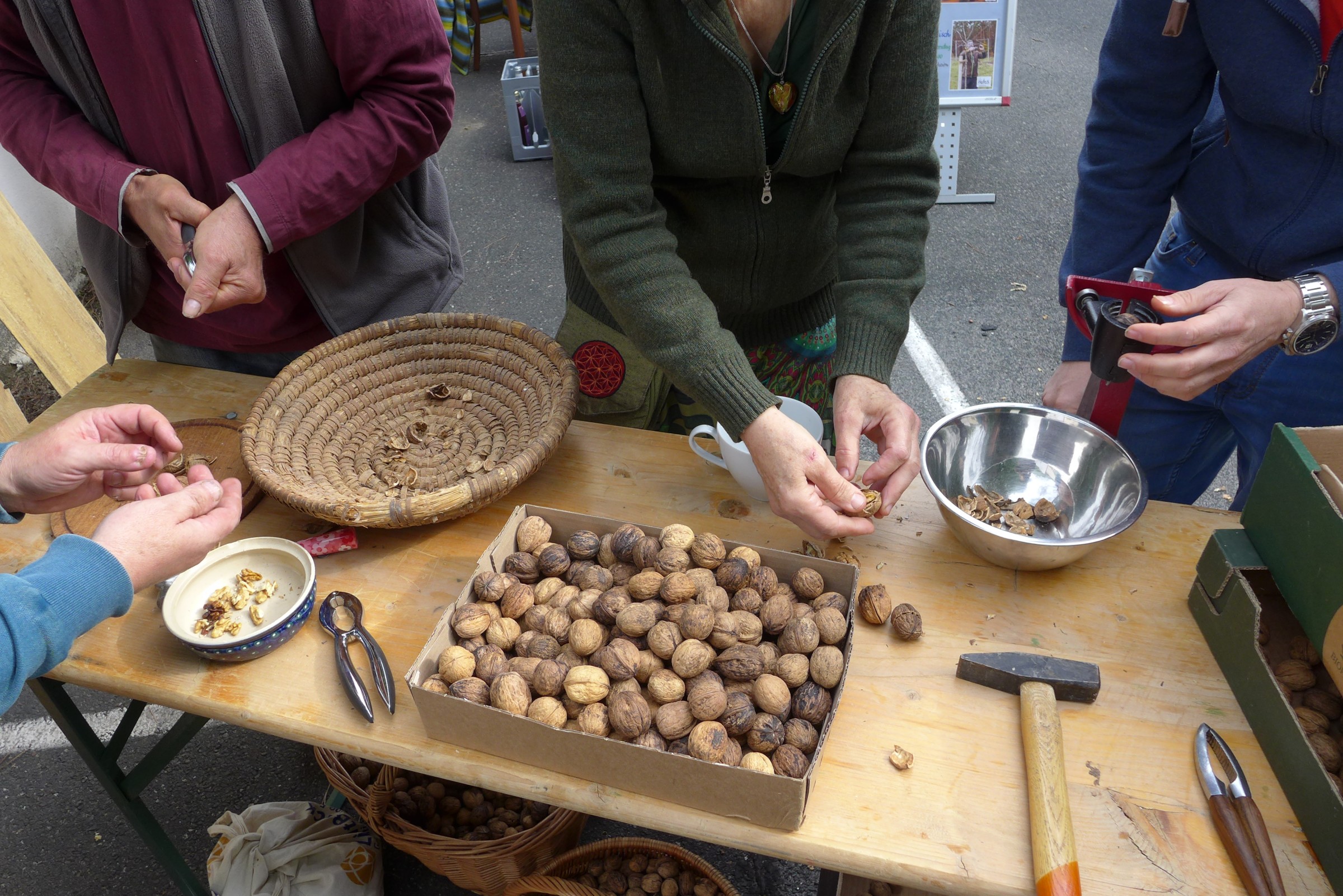 Kommt mit Engagierten des Projekts ins Gespräch, nehmt euch gegen eine kleine Spende Nüsse von letzten Jahr mit.