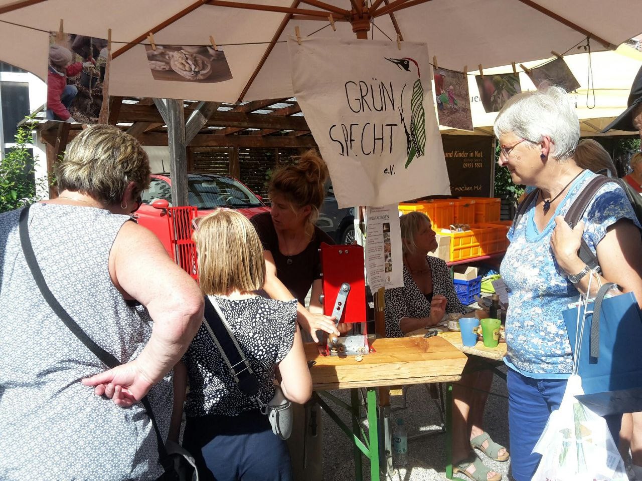 Am Infostand des Nüsseprojekts waren Besucher*innen eingeladen das Projekt und