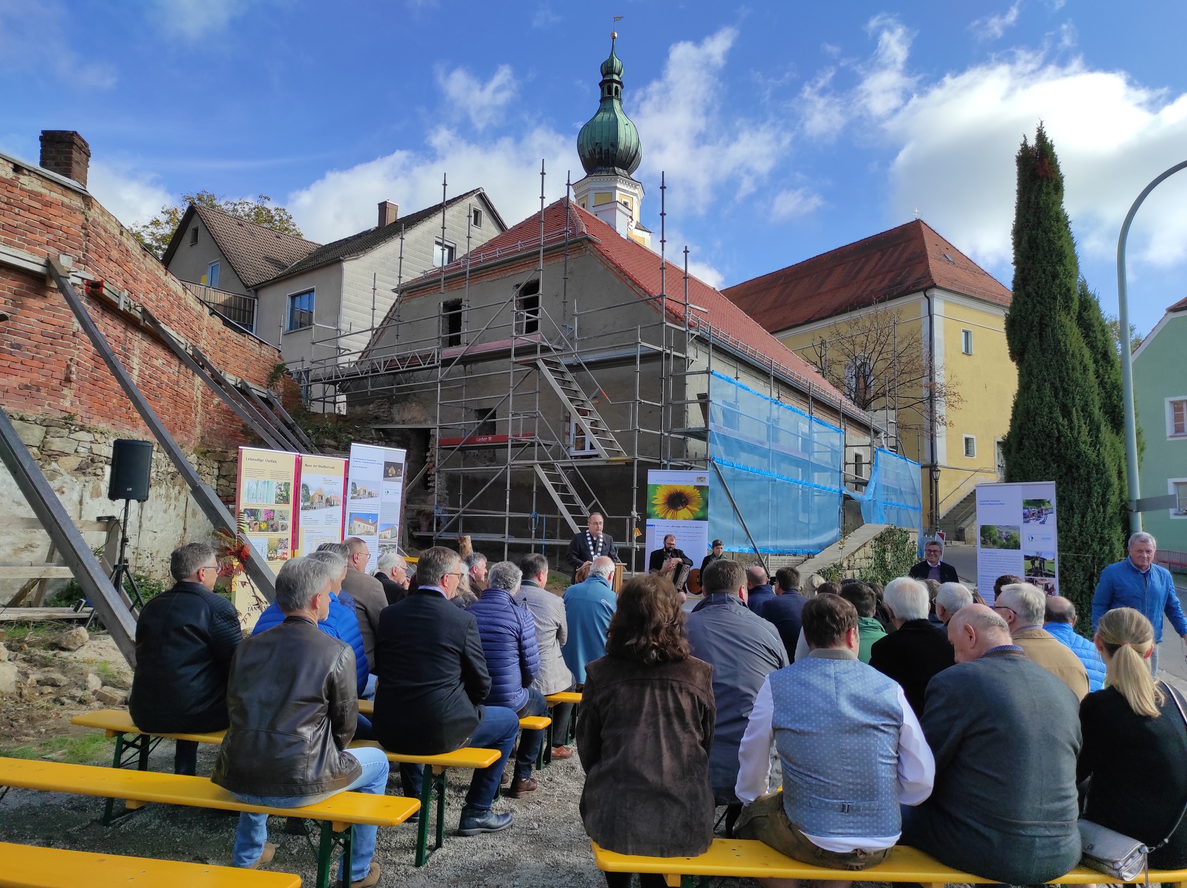 Gekommen waren zahlreiche Ehrengäste, darunter die stellvertretende Landrätin Margit Kirzinger, der Leiter der Abteilung Land- und Dorfentwicklung vom Amt für ländliche Entwicklung Frank Langguht, der Landesvorsitzende des Landesbundes für Vogelschutz Dr. Norbert Schäffer, der stellvertretende Geschäftsführer des Naturparks Nördlicher Oberpfälzer Wald Bernd Stengl und der Architekt Christian Schönberger, sowie Interessierte aus der Bevölkerung.