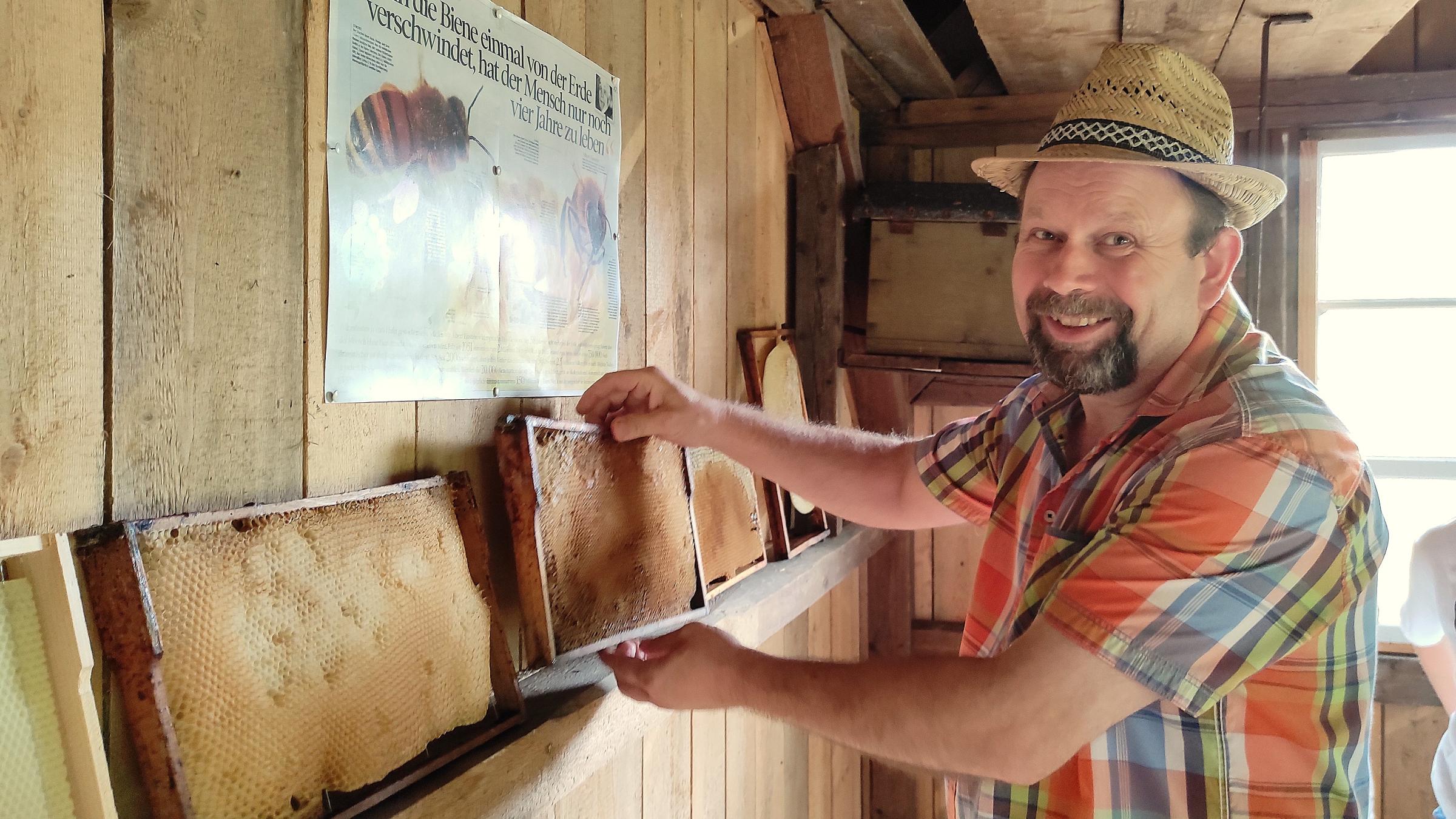 Zudem gab es einen Probierstand vom Imkerverein Trausnitz und der Mosterei Bernhard aus Steinach. Hier wurden leckerer Tännesberger Honig und Apfelsaft verkostet. Beide Produkte stammen aus langjähriger Zusammenarbeit zwischen den Betrieben und der Biodiversitätsgemeinde Tännesberg. Die Produkte stehen für einen nachhaltigen, extensiven Umgang mit der Natur. Insbesondere die Kombination von Bienen und Streuobstwiesen ermöglicht neben einer ertragreichen Obsternte auch eine hohe Artenvielfalt auf der Wiese. Durch die Bestäubung der Obstbäume und der Pflanzen, erhöht sich die Biodiversität und gleichzeitig entstehen besonders leckere Lebensmittel.
