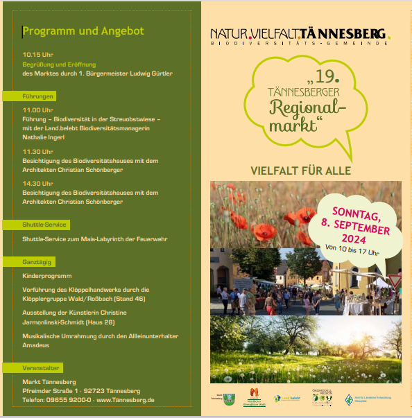 Tännesberg lädt zum 19. Mal zum Regionalmarkt ein, am Sonntag den 08.09.2024 ist es so weit!