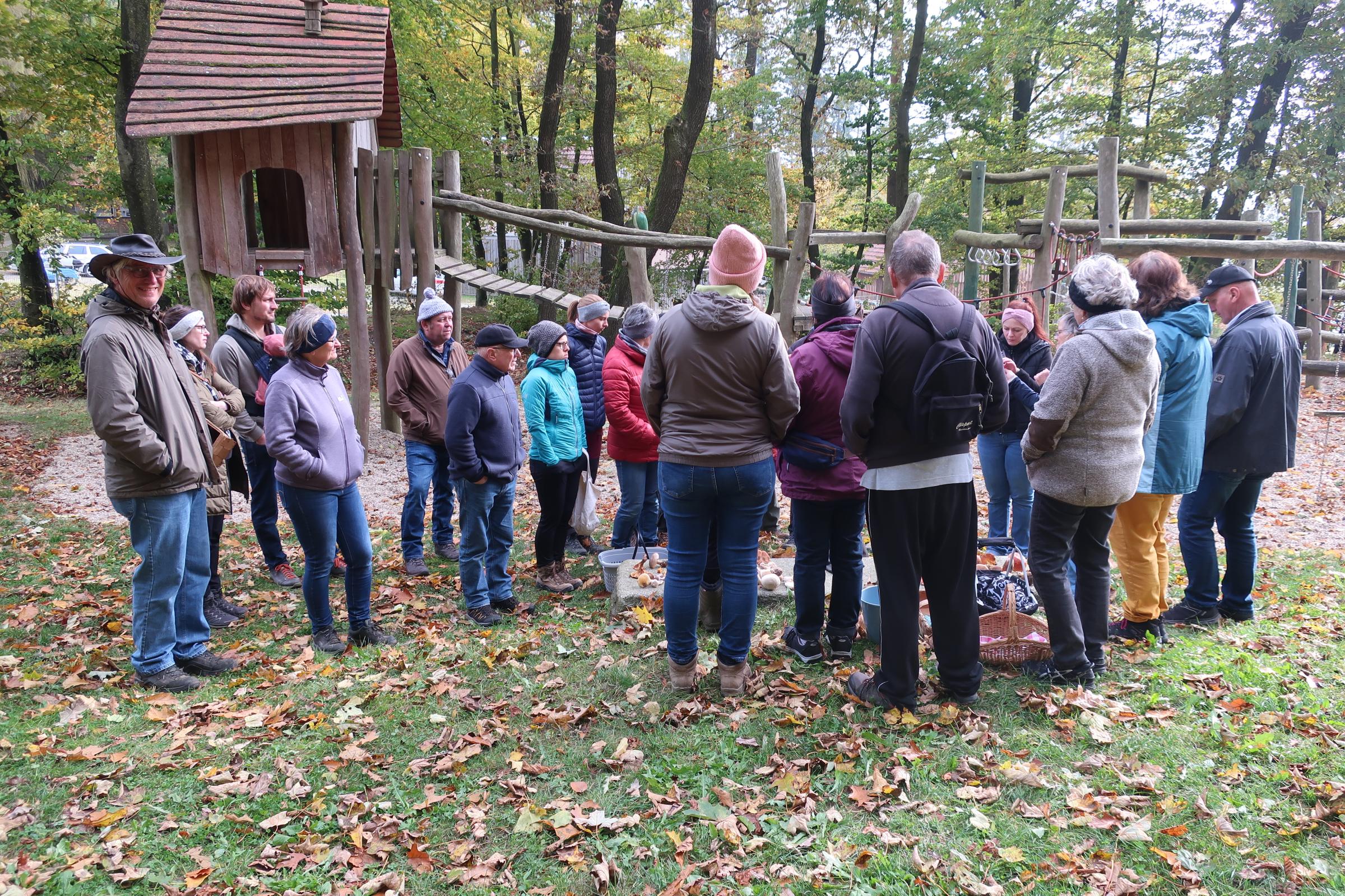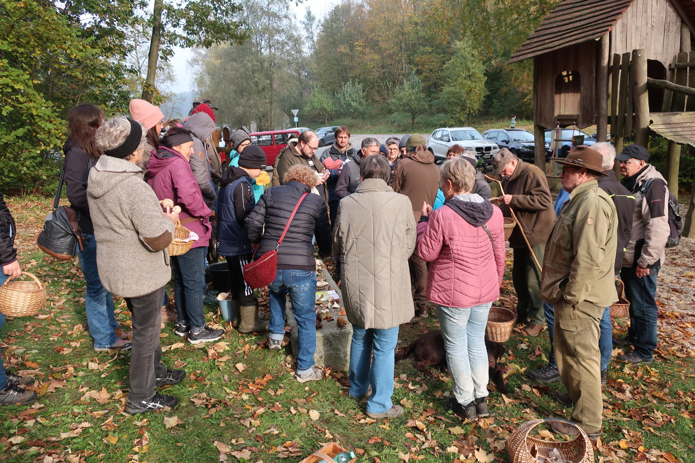 Zunächst erklärte Niclas die Grundlagen zum Pilze sammeln: "Pilze leben unterirdisch, was wir sehen ist der oberirdische Fruchtkörper." Deshalb kann der Fruchtkörper vorsichtig gesammelt werden ohne das Mycel zu zerstören. Der Pilz sollte herausgedreht und nicht geschnitten oder gezogen werden. Dadurch lässt er sich einerseits besser bestimmen, zum anderen wird aber auch der Pilz weniger verletzt. Und wer auch im darauffolgenden Jahr viele Pilze finden möchte, der sollte zudem bedenken, dass der Fruchtkörper dem Pilz zur Fortpflanzung dient. Sammelt man also alle Exemplare, so können sich die Pilze nicht mehr verbreiten und der Ertrag im nächsten Jahr bleibt aus. Außerdem haben Pilze in der Natur eine wichtige Funktion: Sie zersetzen organisches Material und führen es dem Kreislauf wieder zu.