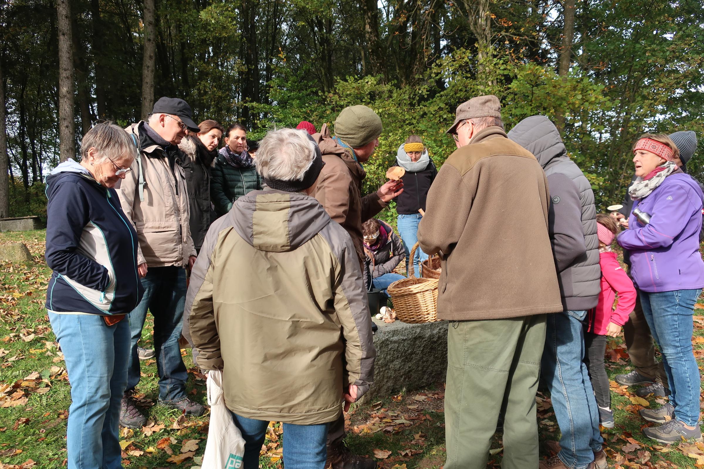 Nach den wertvollen Hinweisen vom Experten, ging es für die Teilnehmer:innen ans Sammeln. Zahlreiche Pilze wurden in den Tännesberger Wäldern gefunden. Gemeinsam mit Niclas wurden diese anschließend bestimmt. Er erklärte an welchen Merkmalen man sie identifiziert und von ungenießbaren oder gar giftigen Doppelgängern unterscheidet. "Immer wieder wird von Pilzvergiftungen berichtet. Deshalb gilt für Pilzsammler: Kenne ich nicht, esse ich nicht. Für Anfänger eignen sich beispielsweise Röhrlinge oder auch Täublinge", so Niclas, "denn das Schlimmste was passieren kann ist, dass man den Pilz nicht verträgt, aber tödlich ist das nicht." Zudem sollte man ausschließlich frische Pilze konsumieren. "Bleibt am Hut des Pilzes eine Delle zurück, wenn man mit dem Finger darauf drückt, dann sollte man den Pilz nicht mehr essen." Und außerdem sollten die Pilze niemals roh gegessen, sondern zuvor mindestens 10 bis 20 Minuten erhitzt werden. Denn sonst kann es zu Pilzscheinvergiftungen kommen, selbst wenn es sich um einen Speisepilz handelt. Auch gibt es unter den Speisepilzen große Unterschiede in Qualität und Geschmack: "Besonders lecker bei richtiger Zubereitung sind Arten wie Sandröhrling, Milchbrätling und der bekannte Steinpilz."