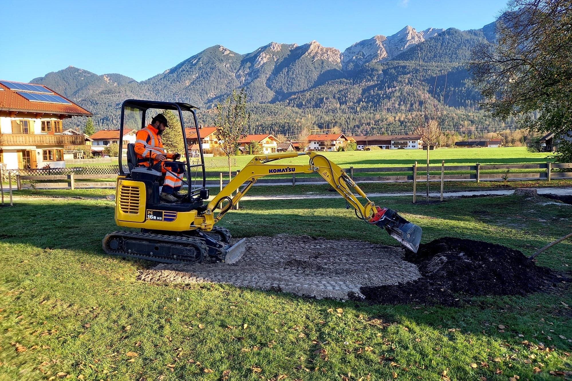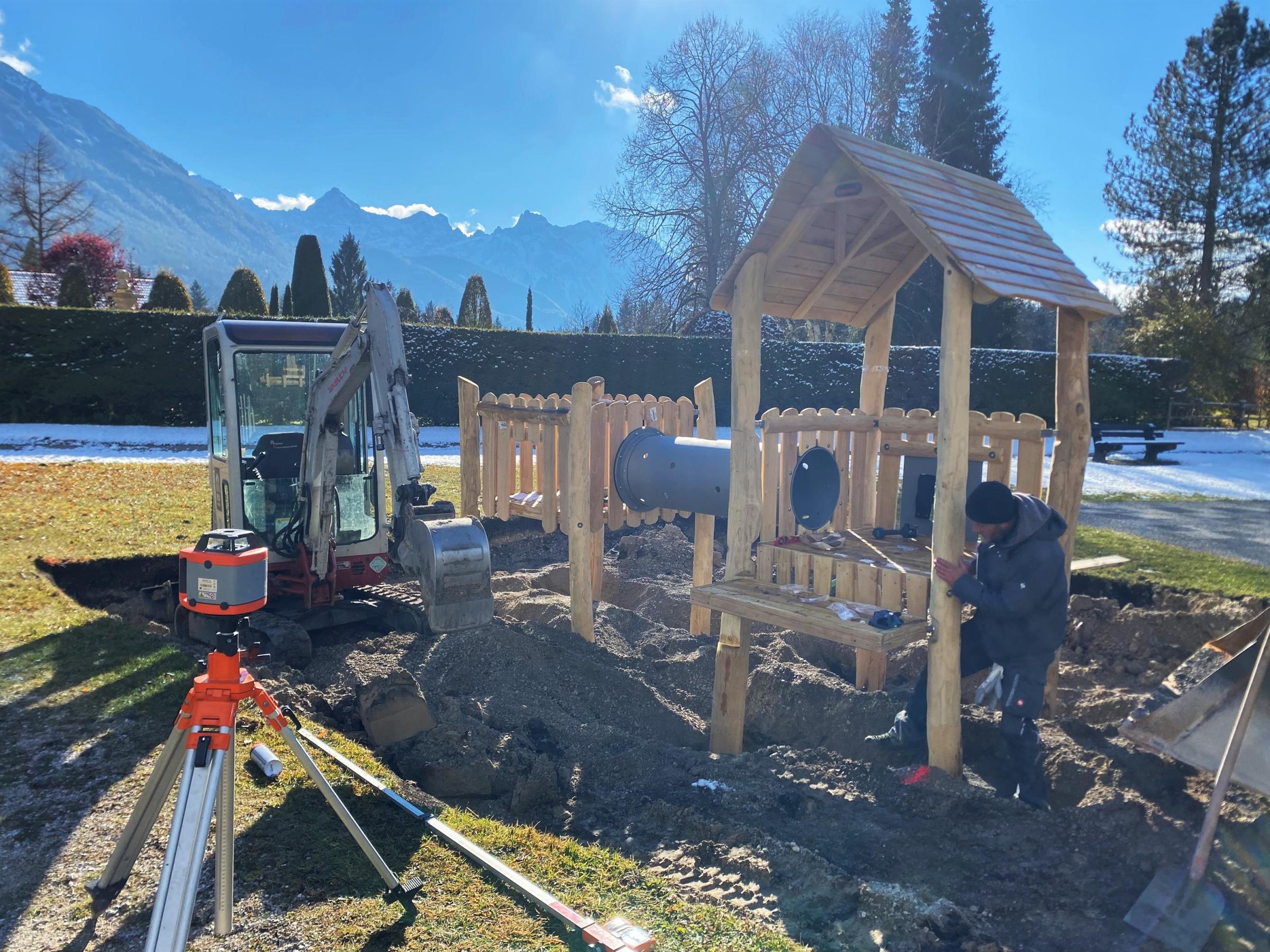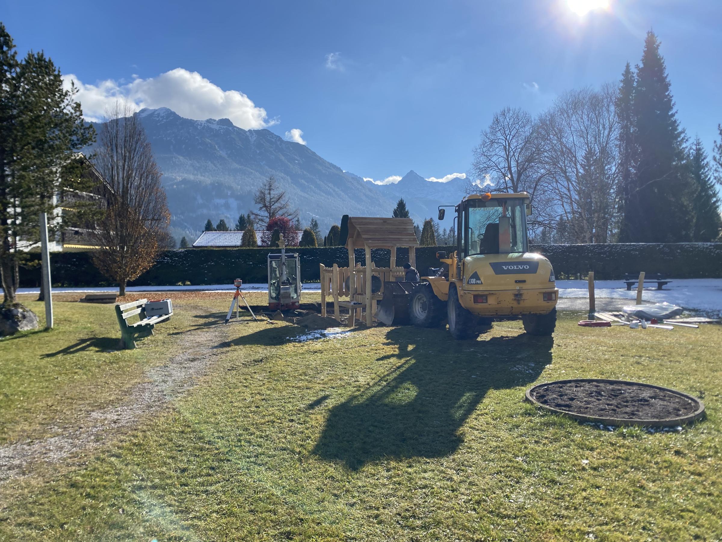 Im Zuge der Wallgauer Dorferneuerung wird nicht nur der Kurpark umgestaltet, auch die Erweiterung des alten Spielplatzes und die Kleinspieleinrichtung am Haus des Gastes sind in Arbeit. Derzeit laufen die Vorbereitungen für den Einbau der neuen Spielgeräte. Dafür mussten Anfang November sieben ehrenamtliche Helfer der Dorferneuerung und des Gemeinderats unter Leitung von Sabine Berwein von der Spielplatz AG, mehrere Gruben für den Einbau der Spielgeräte ausbaggern. „Wenn die Geräteinstallation und alle weiteren Baumaßnahmen planmäßig verlaufen, können wir nach Abnahme durch den TÜV den Spielplatz noch heuer in Betrieb nehmen“, erklärt Nico Hebler. Neben den klassischen Spielgeräten werden ein Netzturm, Aufsitzbagger, Spielturm und Drehring den Spielplatz aufwerten. Auch die Biker können voraussichtlich noch dieses Jahr den Bikepark nutzen. Die dafür ausstehenden Holzelemente und Rampen folgen dann im Frühjahr. Auch hierfür konnten freiwillige Helfer gefunden werden.