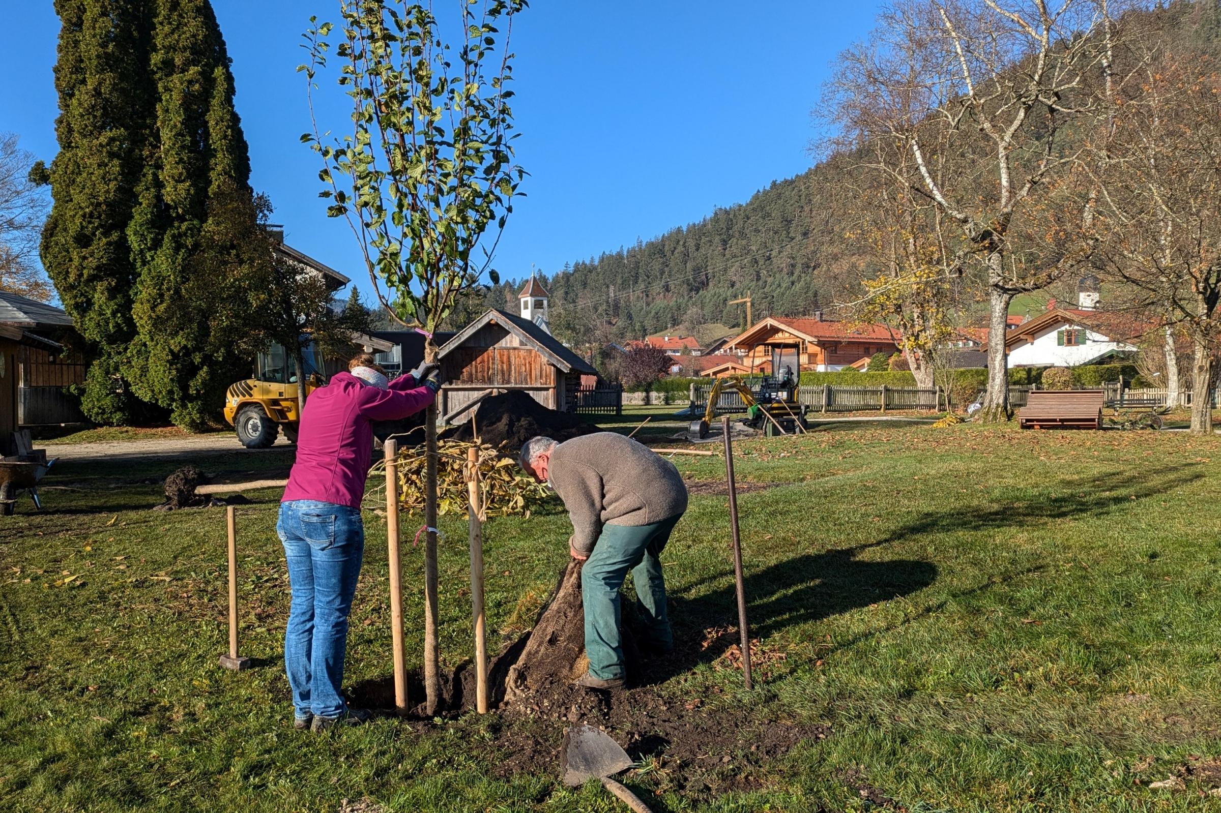 Mit Zustimmung des Gemeinderats im Juli 2024 konnten die Projekte Kurpark und Freizeitanlagen an der Finz in Angriff genommen werden. Als Sofortmaßnahmen der Dorferneuerung starteten erste Pflanzaktionen im Oktober und Anfang November. Bis zu 20 ehrenamtlich Fleißige helfen dabei, dass Bäume, Sträucher und Blumenzwiebeln den Kurpark wieder schöner machen. „Die Begrünung ist das Ergebnis wochenlanger Arbeit und zahlreicher Treffen der dafür gegründeten Arbeitsgruppe“, so Irmi Holzer. Unter ihrer Leitung wurde das Konzept zur Begrünung erarbeitet. Als Wallgauer Bürgerin liegt ihr nicht nur der Ort am Herzen, als gelernte Floristin versteht sie naturgemäß auch etwas von Pflanzen. Und darauf kommt es bei der Auswahl der Begrünung in einem Ort wie Wallgau an, der fast 900 Meter ü. NHN liegt und im Winter auch mal starker Schneefall mit eisigen Temperaturen herrscht. „Die Pflanzen für den Kurpark sollten deshalb nicht nur robust und winterhart sein, sondern auch pflegeleicht“, betont Irmi Holzer.