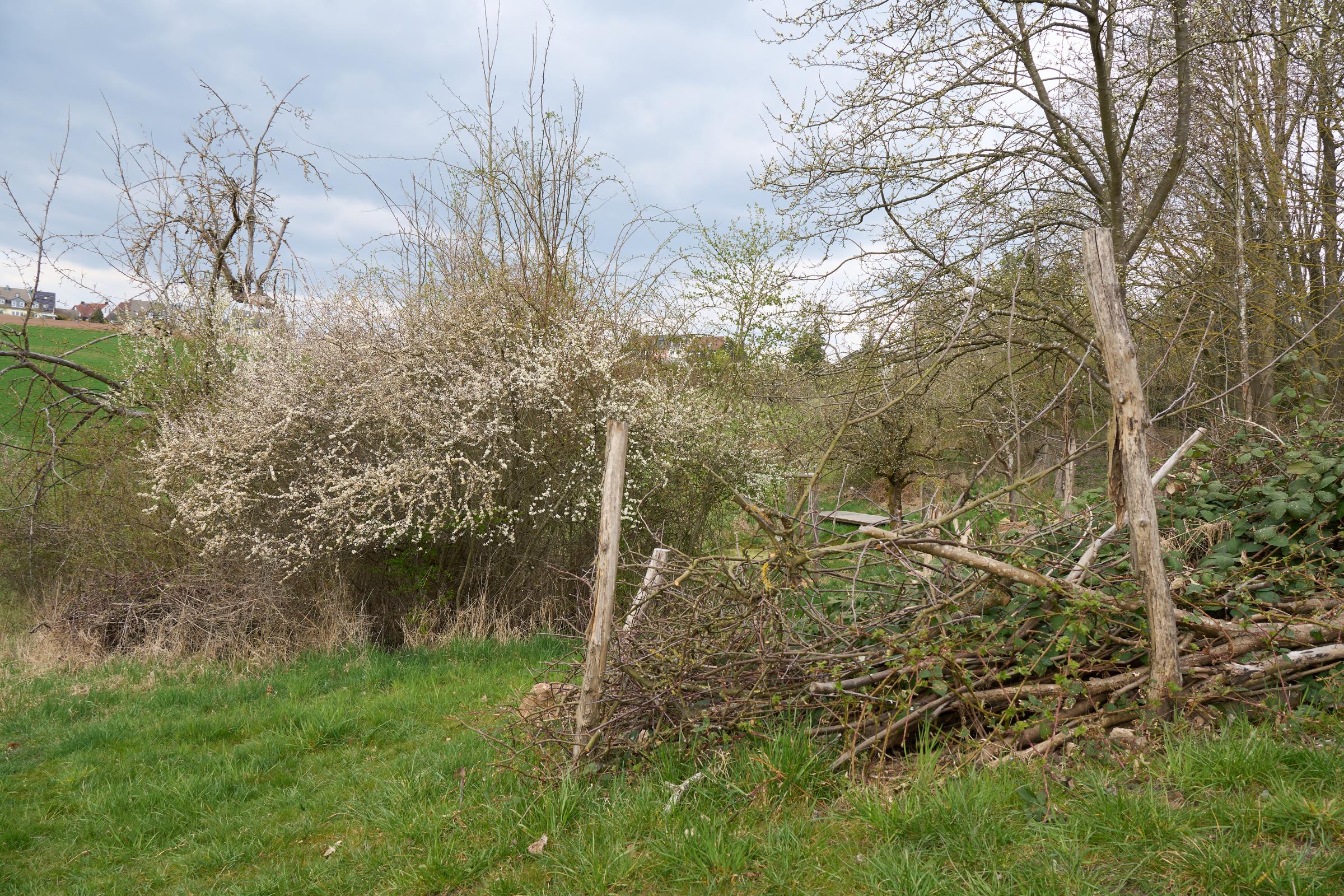 Auf den Flächen entstanden Totholzhecken, ein Sandbeet und zwei Trockenmauern. Die bestehende Streuobstwiese wurde durch Neupflanzungen ergänzt und erweitert. Die alten Obstbäume blieben dabei als wertvolle Biotopbäume erhalten. Entlang von Grundstücksgrenzen und neu geschaffenen Nutzungsflächen wurden verschiedene Heckenelemente integriert. Die vorhandene Quelle wurde genutzt, um die angelegten Tümpel zu speisen. Diese dienen nicht nur als Feuchtbiotope, sondern sollen im Sinne der Permakultur das Wasser möglichst lange auf der Fläche halten.