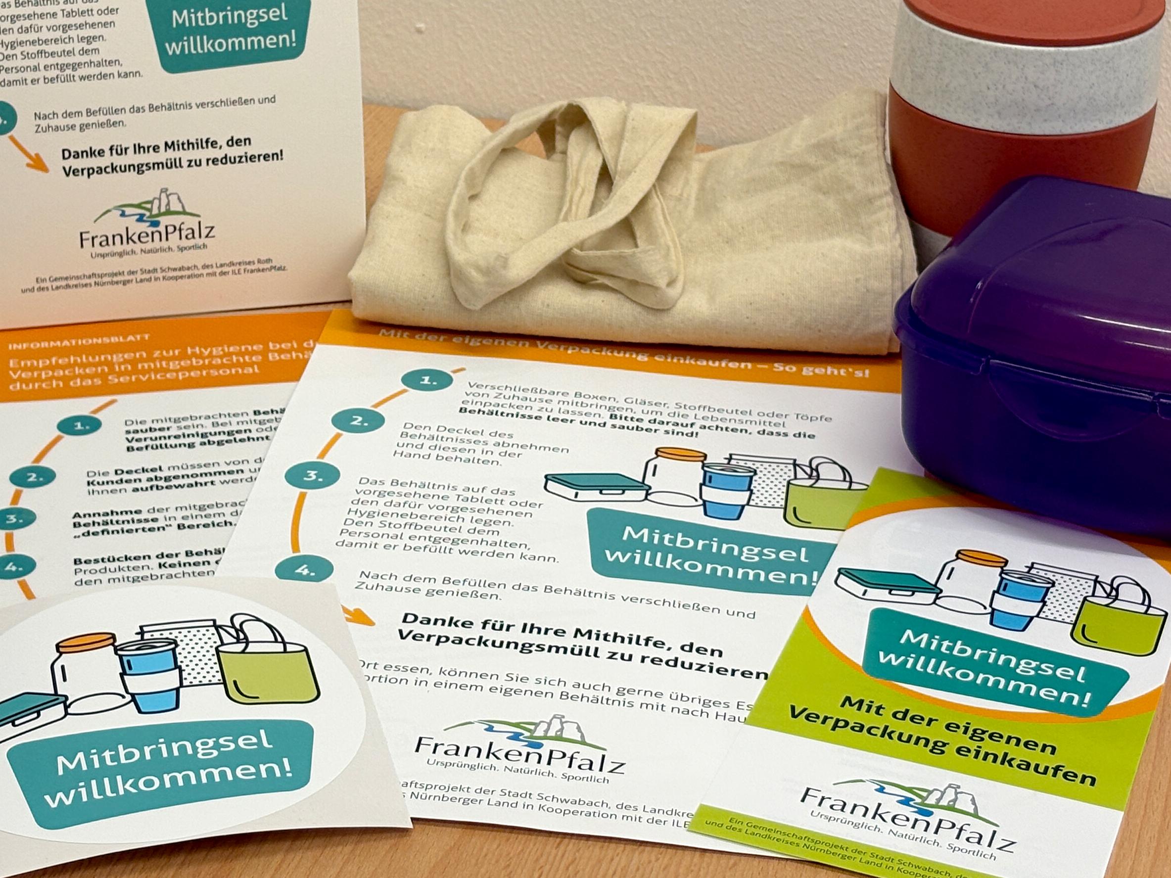 Mehr Menschen wollen plastikfrei leben. Mit Brotbeutel, Box oder Becher unverpackt einkaufen – das fördert die Aktion „Mitbringsel willkommen“. Aus Roth/Schwabach und Nürnberger Land kommt sie nun in die FrankenPfalz. Regionale Läden, Wirtschaften und Direktvermarkter unterstützen das. Aufkleber oder Flyer zeigen mitmachende Betriebe.