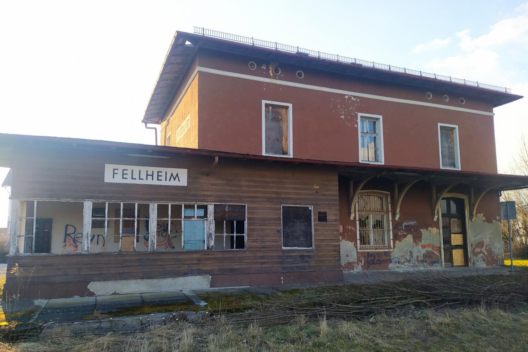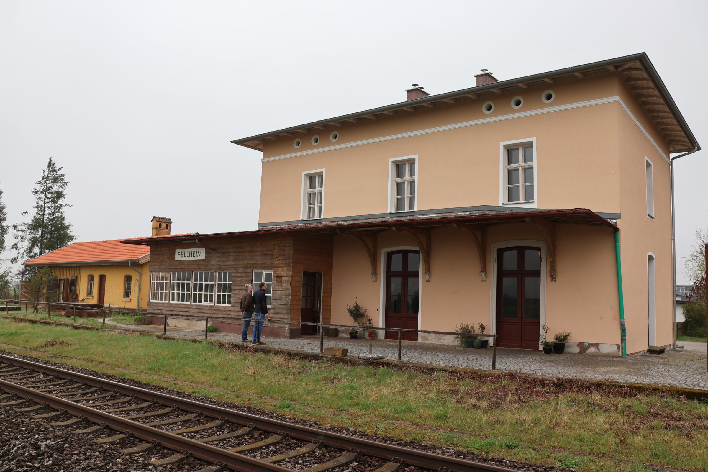 Rund 160 Jahre alt ist das Hauptgebäude, das eine wechselvolle Geschichte hinter sich hat: Bei der Inbetriebnahme 1862 eröffnete der Bahnhof neue Möglichkeiten in Sachen Mobilität und Handel. Während der NS-Zeit wurden von hier jüdische Bürgerinnen und Bürger deportiert. Und in den vergangenen Jahrzehnten war das Gebäude dann dem Verfall preisgegeben. Unbewohnbar, aber denkmalgeschützt: keine einfache Kombination. Doch der gebürtige Mainzer Albrecht Schwedass, der schon über 40 Jahre in Fellheim lebt, traute sie sich zu.