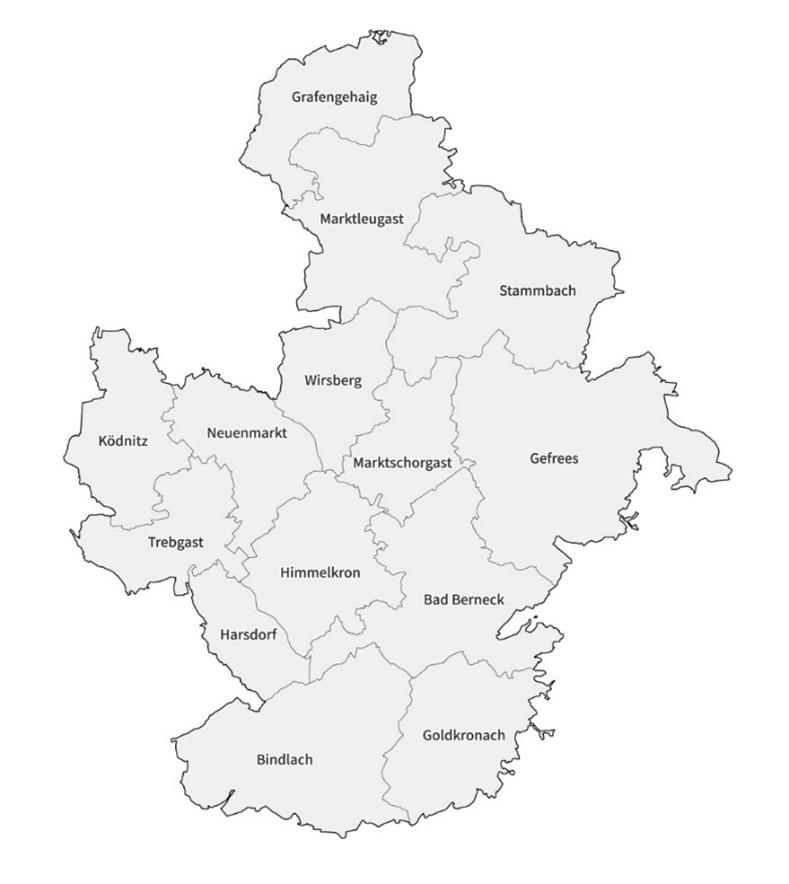 Von 14 benachbarten Kommunen aus den drei Landkreisen Kulmbach, Bayreuth und Hof beteiligen sich neun Kommunen an dem Vorhaben (Stadt Bad Berneck, Stadt Gefrees, Stadt Goldkronach, Gemeinde Harsdorf, Gemeinde Himmelkron, Markt Marktschorgast, Gemeinde Neuenmarkt, Markt Stammbach und Gemeinde Trebgast). Die ehrenamtliche Geschäftsführung bilden der 1. Bürgermeister der Stadt Goldkronach, Holger Bär, und der 1. Bürgermeister des Markt Stammbach, Karl Philipp Ehrler, während ILE-Managerin Eva Gravogel die Aufgabe der Verwaltung übernimmt.
