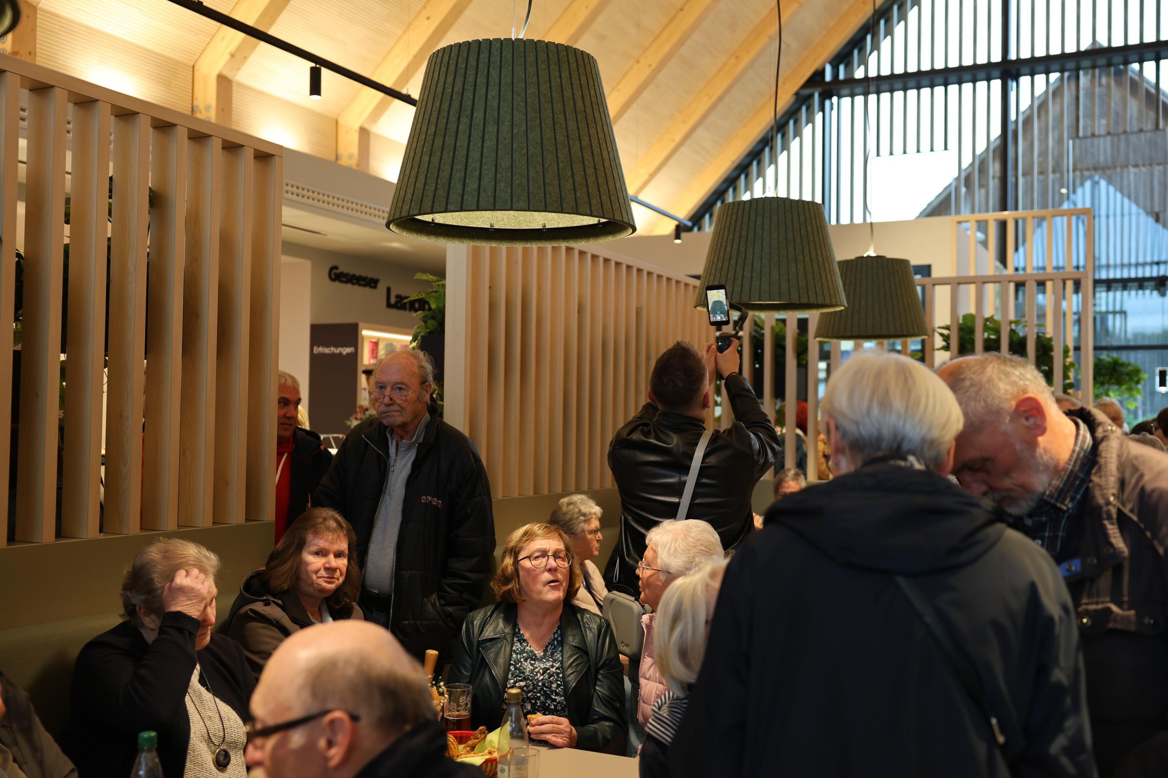 Der Neubau in Holzrahmenbauweise mit seiner Fassade aus Douglasie-Lamellen ähnelt einer Scheune und passt sich so optimal an die Umgebung an. Bei der Auswahl der Baumaterialien wurde auf umweltfreundliche Prüf- und Gütesiegel sowie Nachhaltigkeit Wert gelegt. Den größten Raum nimmt das rund 40 Sitzplätze umfassende Tagescafé ein, an der Bäckertheke können neben Backwaren der Geseeser Landbäckerei – eine kleine Filiale befand sich bisher direkt im Nachbargebäude - Produkte des täglichen Bedarfs erworben werden. Im Vorraum steht ein Verkaufsautomat mit regionalen Wurstspezialitäten bereit. Zwei große Terrassen laden bei schönem Wetter zum Verweilen im Freien ein.