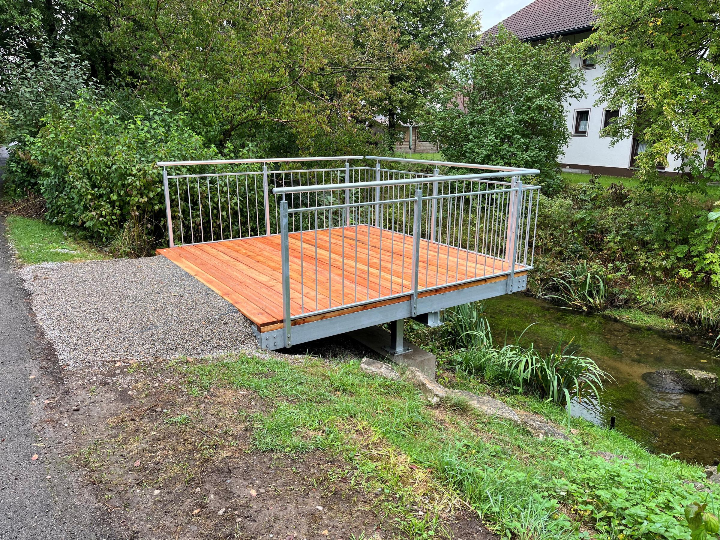 Die Gemeinde Schwabbruck hat im Ortszentrum eine Terrasse errichtet, die über die Schönach hinausragt. Damit wurde ein identitätsstiftender idyliischer Platz in Schwabbruck geschaffen, der einen besonderen Blick auf die Schönach bietet und als Besonderheit und Treffpunkt im Ortszentrum dient.