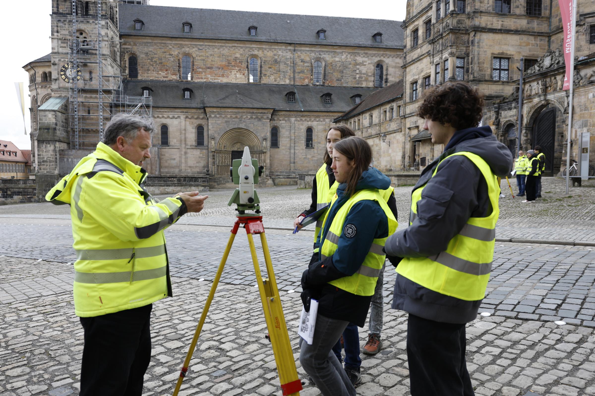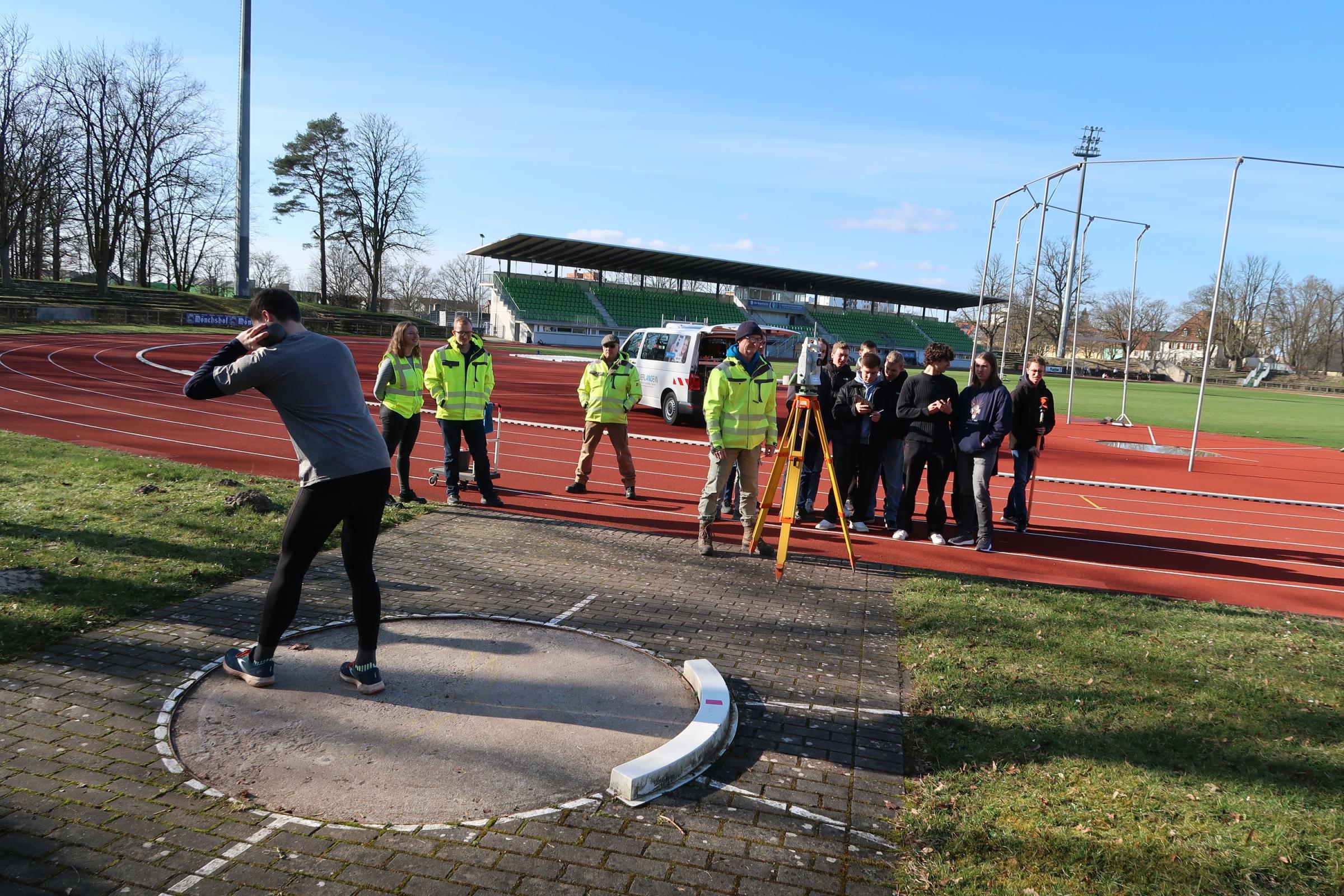 Die Jugendlichen durften verschiedene Vermessungsgeräte ausprobieren. Sie ermittelten den Wasserhöhenunterschied an der Schleuse des König Ludwig-Kanals, berechneten die Höhe eines Kirchturms des Doms sowie den Inhalt einer landwirtschaftlichen Fläche. Außerdem halfen sie tatkräftig bei der Längenvermessung beim Kugelstoßen, Weitwurf und Speerwerfen bei einer Sportveranstaltung ihrer Schule.