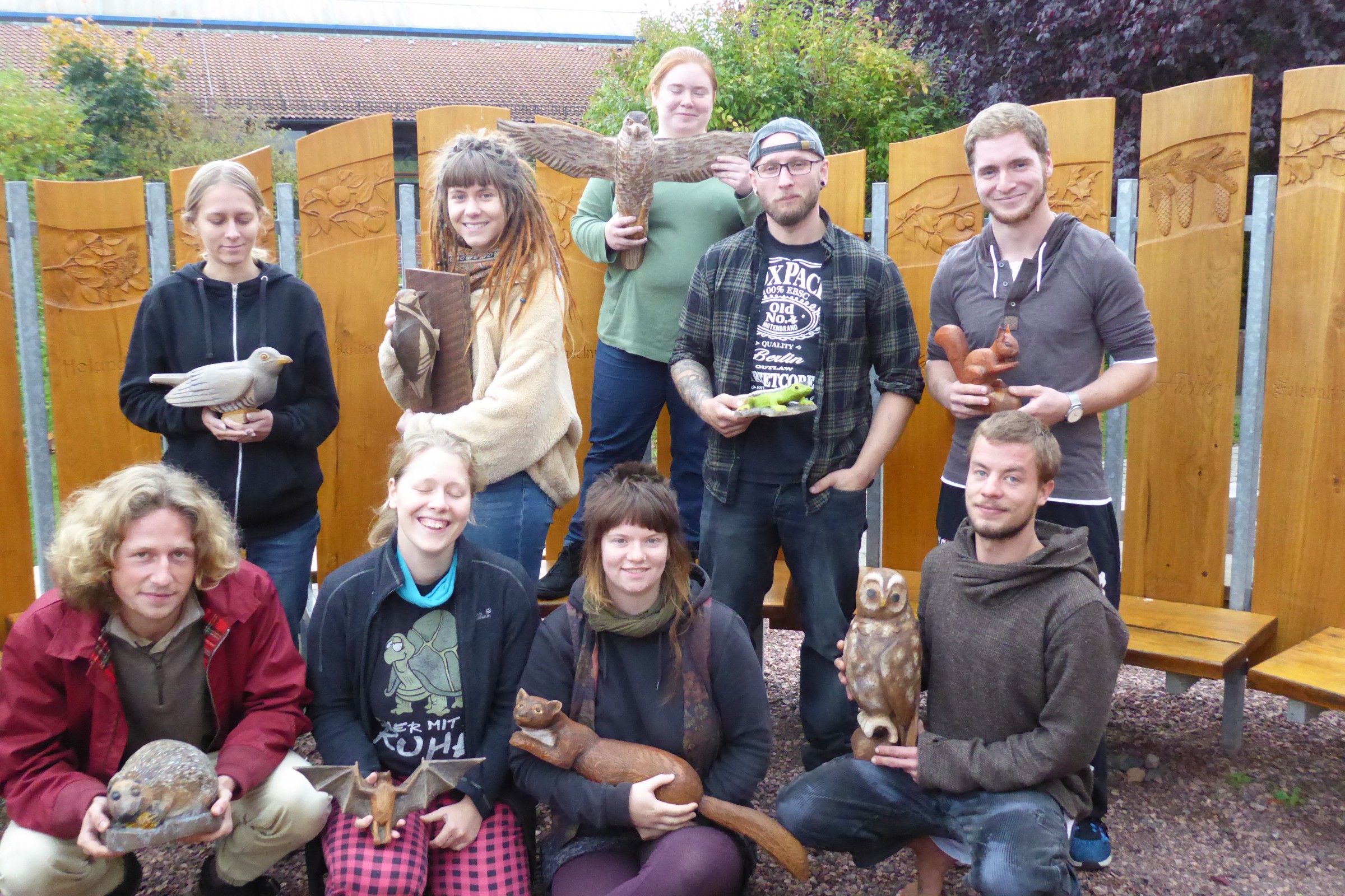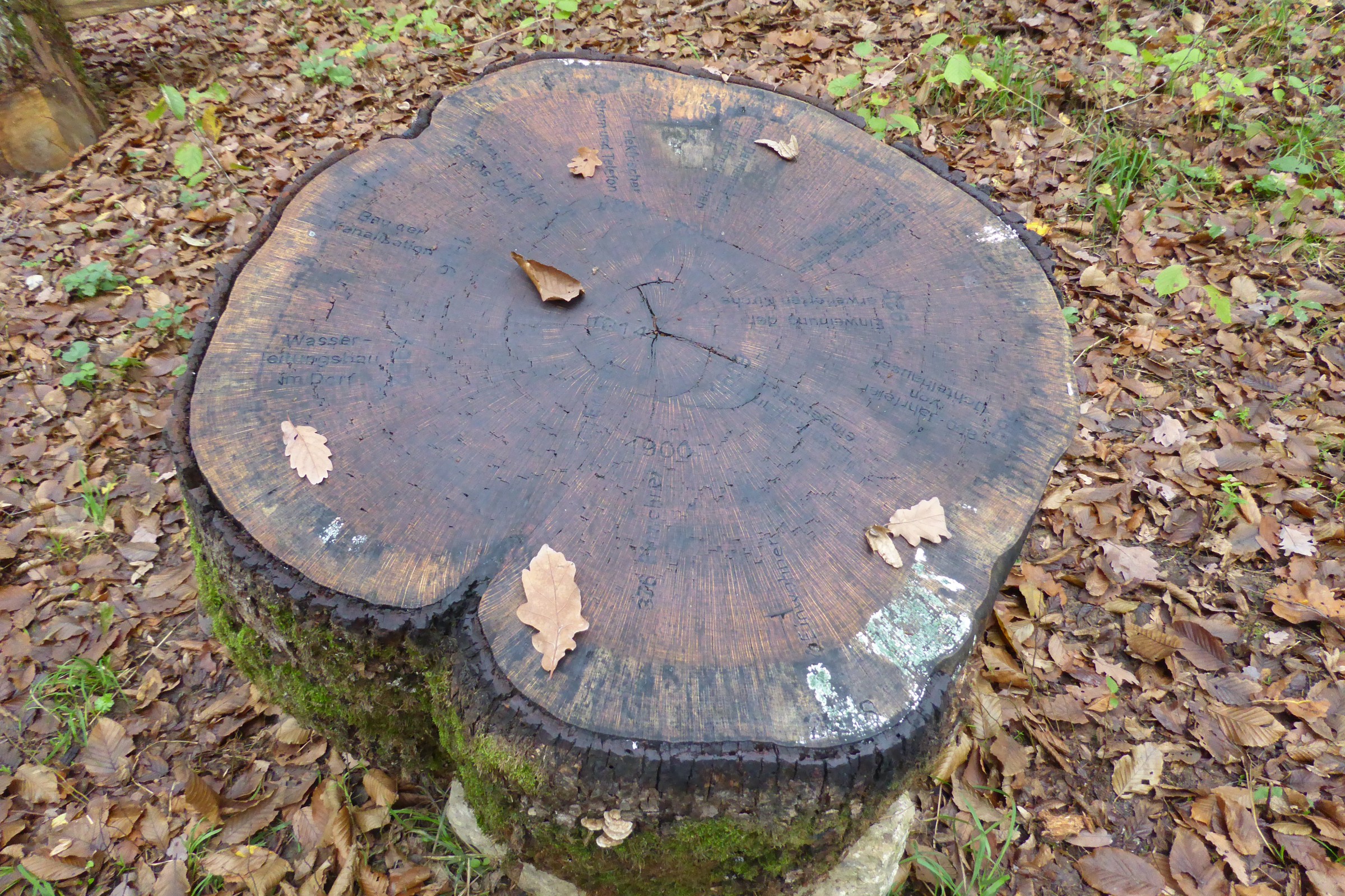 Das Dorf selbst wurde Teil des gesamten Waldbiotops, denn viele Beteiligten haben ihre Kompetenzen eingebracht. So zeigt eine zweihundertjährige Eichenscheibe aus dem Üchtelhäuser Wald, was in dieser Zeit im Ort passiert ist. Dafür hat der örtliche Historiker die Daten geliefert und ein bewährtes Team aus engagierten Üchtelhäusern die Umsetzung besorgt. Die „Rentnertruppe“, wie Lia Stefke sie liebevoll und mit größter Achtung nennt, hat unschätzbare Dienste für den gesamten Lehrpfad geleistet. Allen voran Roland Schmitt und Hubert Vollert, die mit viel Können, Herzblut und technischem Geschick das heimische Holz in Bänke, Schilder, „Üchtelbehausungen“ und Baumgeisterwohnungen verwandelt haben.