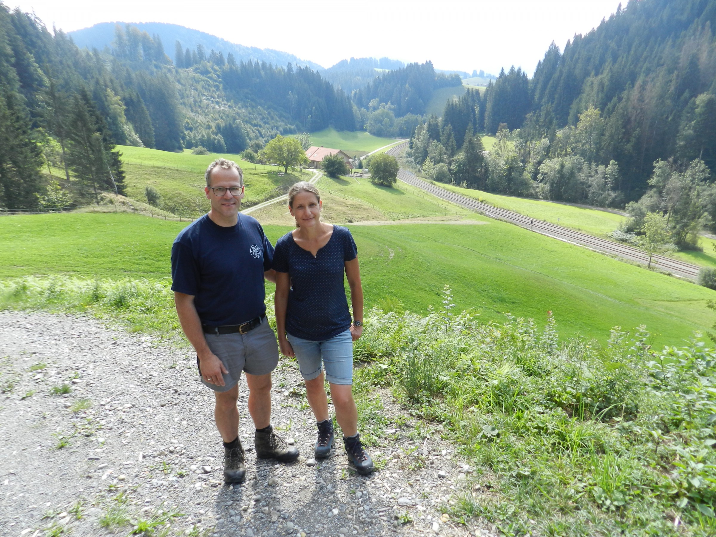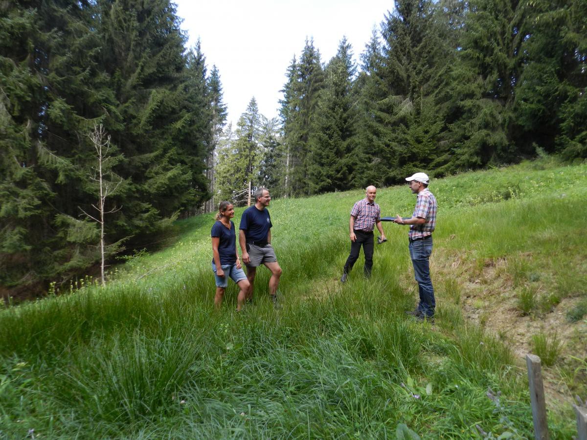 Die Flächen rund um den Hof von Andreas und Bianca Gerstenecker zwischen Oberthalhofen und Weißenbachmühle im Westallgäu sind nicht gerade einfach zu bewirtschaften. Im Jahr 2000 erwarb das Ehepaar das ehemalige landwirtschaftliche Anwesen mit rund zwölf Hektar Grund, davon fünf Hektar Wald, das sie gemeinsam mit ihren Kindern nun als Hobby bewirtschaften. Dahinter steckt aber noch mehr: Dem Verlust blumenreicher Wiesen im Argental wollen sie damit entgegenwirken und einen aktiven Beitrag zum Erhalt der Kulturlandschaft vor Ort leisten. Außerdem ist der Hof mit seinen Flächen für die Gersteneckers vor allem ein Stück Ausgleich zum Büroalltag. Doch die steile Hanglage macht die Flächen schwer zugänglich und das Standortmosaik von mageren Trockenstandorten bis hin zu nassen Flächen ist komplex und erfordert größtenteils aufwändige Handarbeit. Die „Älpler“ brauchen dafür also viel ökologisches Fingerspitzengefühl und müssen großen Zeitaufwand investieren.