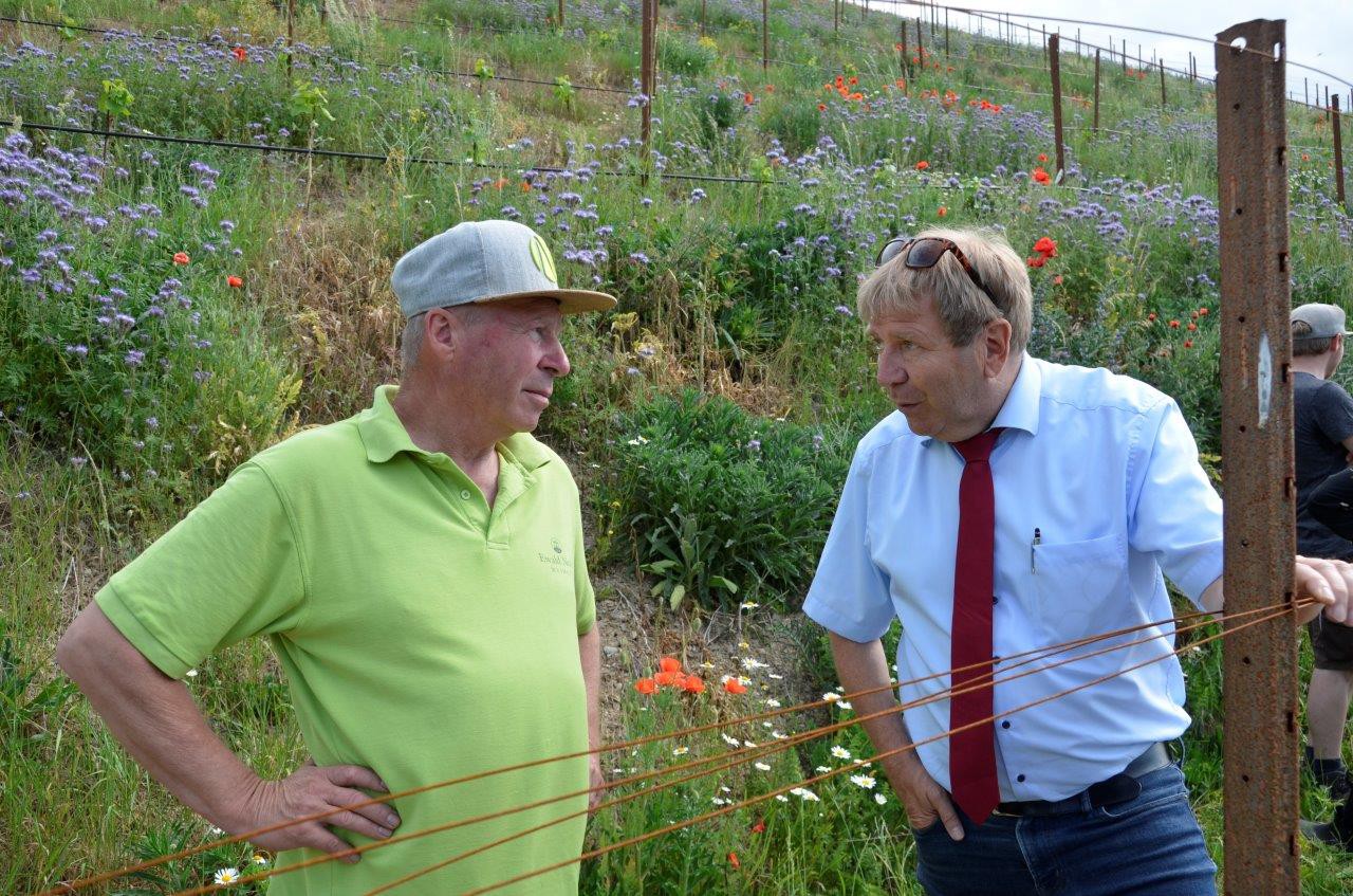 „Ein gelungenes Projekt für mehr die Artenvielfalt im Freistaat Bayern“, findet Jürgen Eisentraut, Leiter des Amtes für Ländliche Entwicklung (ALE) Unterfranken. Am Anfang stand der Entschluss der Familie Neder, zunächst zwei ihrer zwölf Hektar Rebfläche von Direktzuganlagen in Querterrassen umzuwandeln. Vater Ewald und Sohn Lorenz sind überzeugt, dass in Zukunft noch viele Kollegen diesen Weg beschreiten werden.