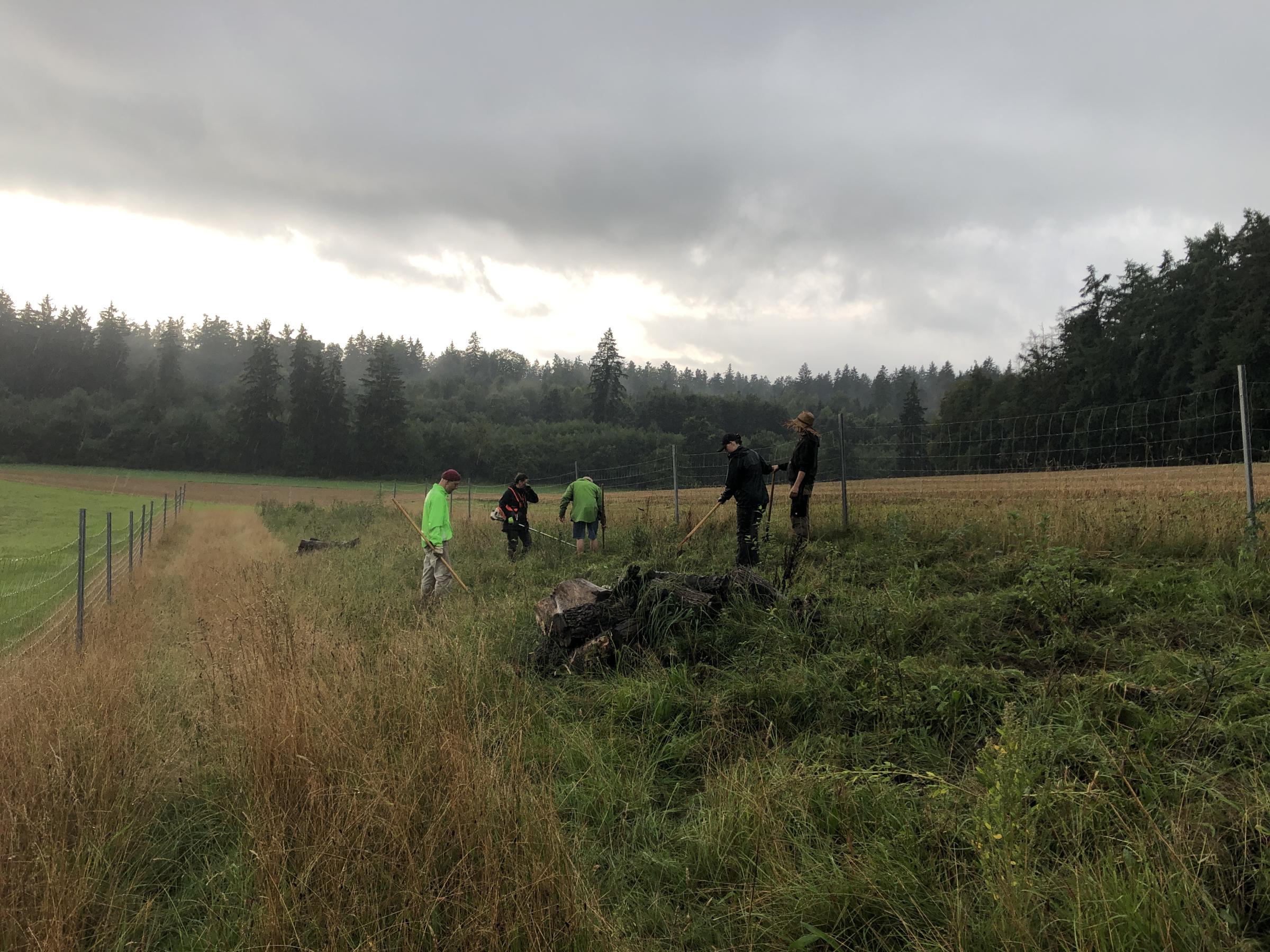 Im Frühjahr 2023 entstand bei einem Visionswochenende mit einem externen Tutor ein Projektplan für die Fläche des Vereins, der nach und nach umgesetzt wird. Im Herbst 2024 wurden auf einer alten Streuobstwiese 15 neue Apfel-, Birnen-, und Zwetschgen-Hochstämme gepflanzt – bewusst zwischen vorhandene, alte Obstbäume, um den Bestand zu erhalten und neu zu beleben. Die Förderung kam über das Programm „Streuobst für alle“. Gewählt wurden robuste, regionale Sorten, die mittlerweile schon gut angewachsen sind.